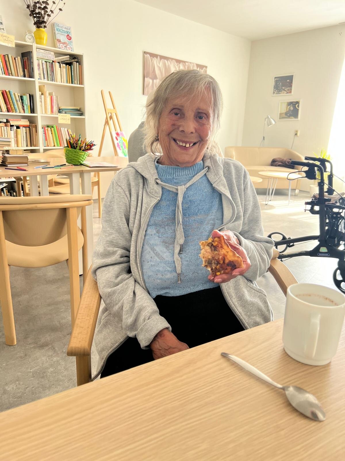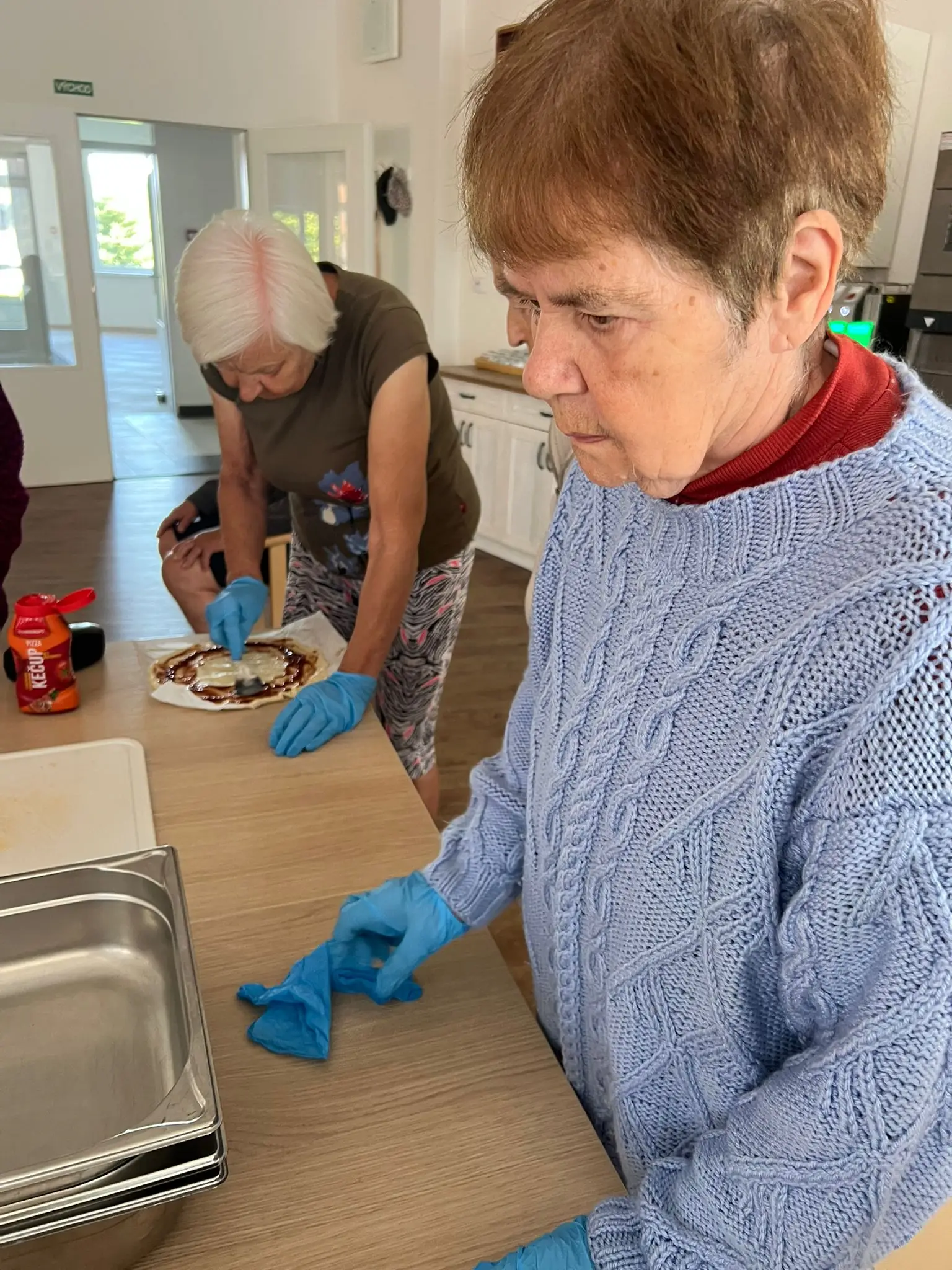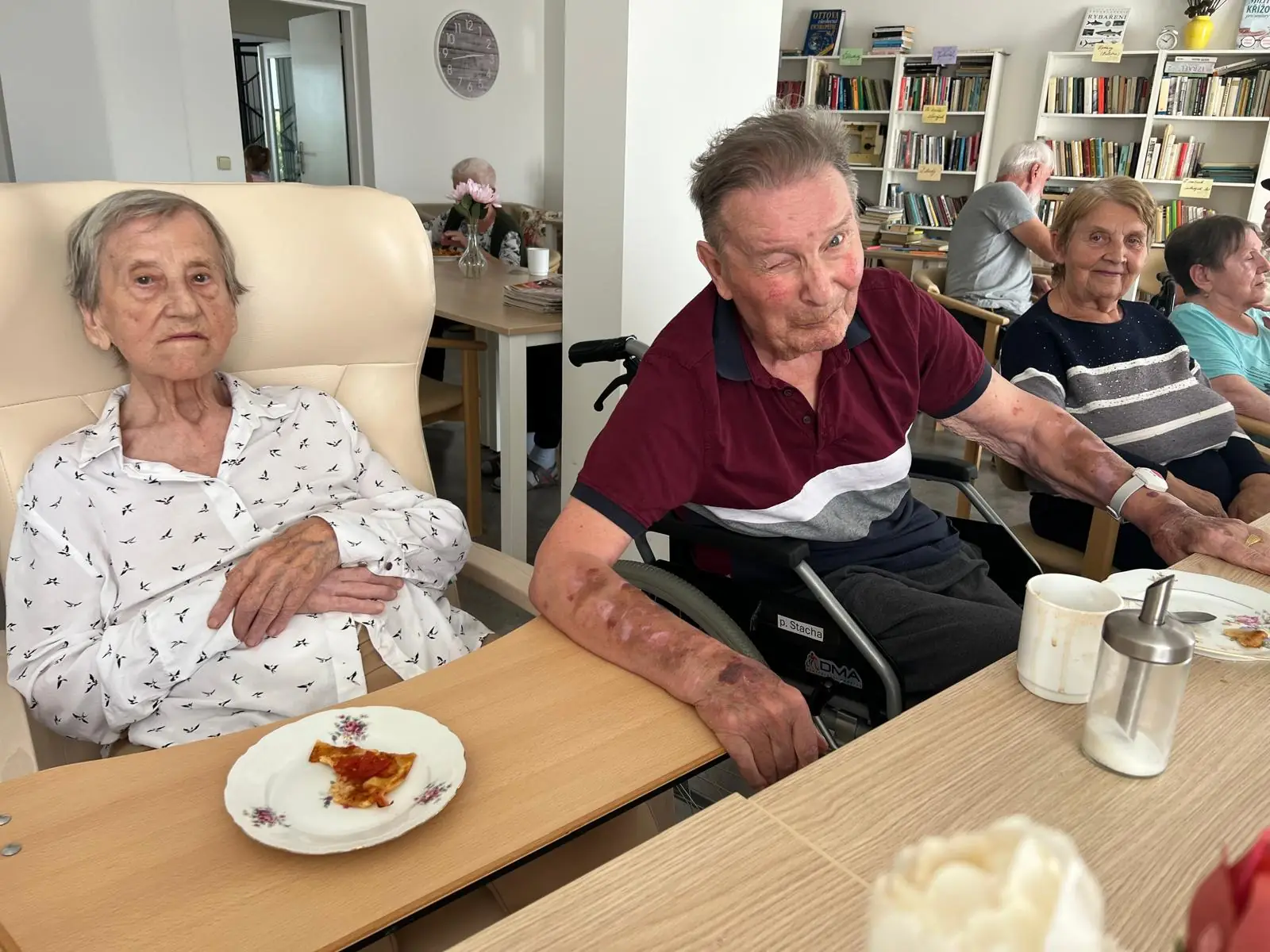 Protože jsme dnes v ALZHEIMER HOME Kateřinice měli výborný sladký oběd, k odpolednímu posezení u kávy jsme si upekli něco slaného. Společnými silami jsme připravili celkem čtyři bohatě obložené pizzy! 🍕