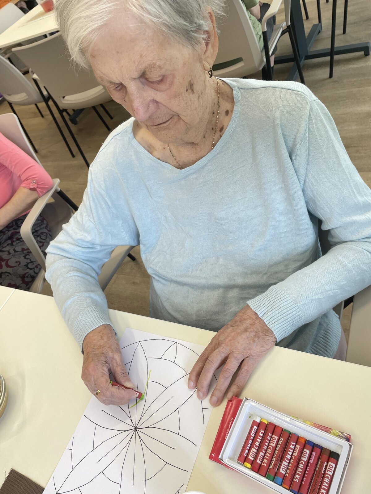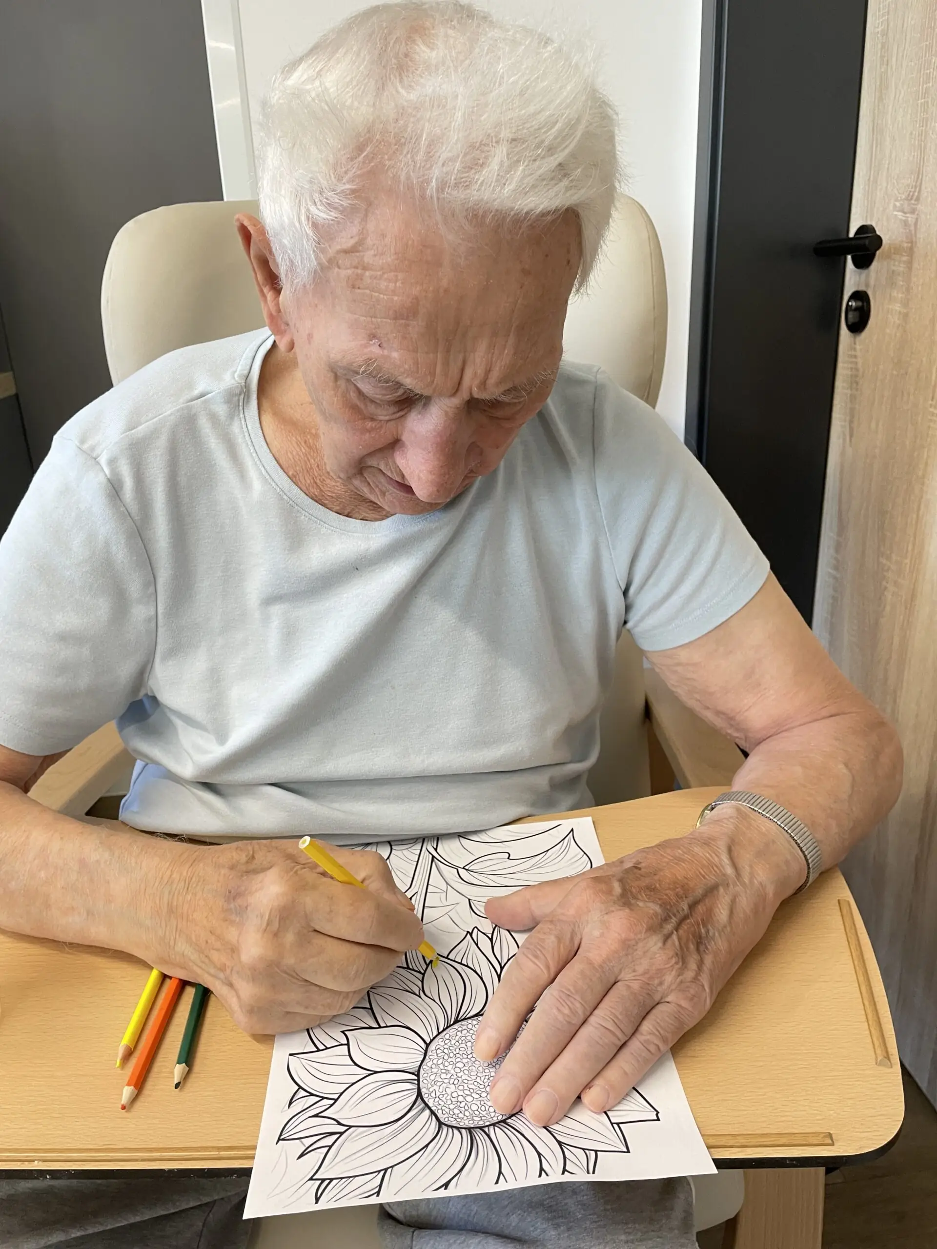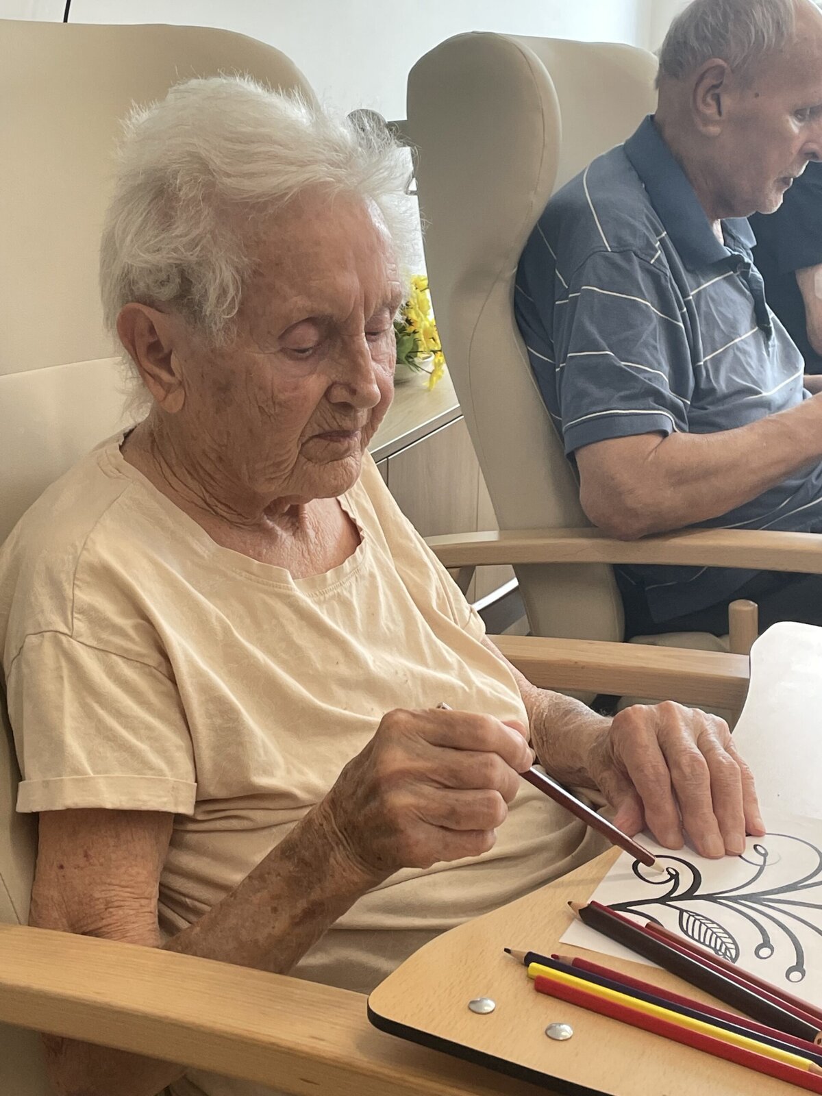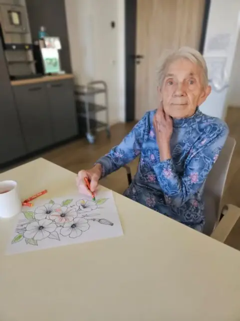 V ALZHEIMER HOME Ostrava – Poruba jsme si dopřáli minulý týden dopoledne plné tvoření. Klienti se pustili do vybarvování omalovánek – a tentokrát sáhli nejen po pastelkách, ale i po voskovkách, které rozjasnily obrázky sytějšími barvami. 🎨