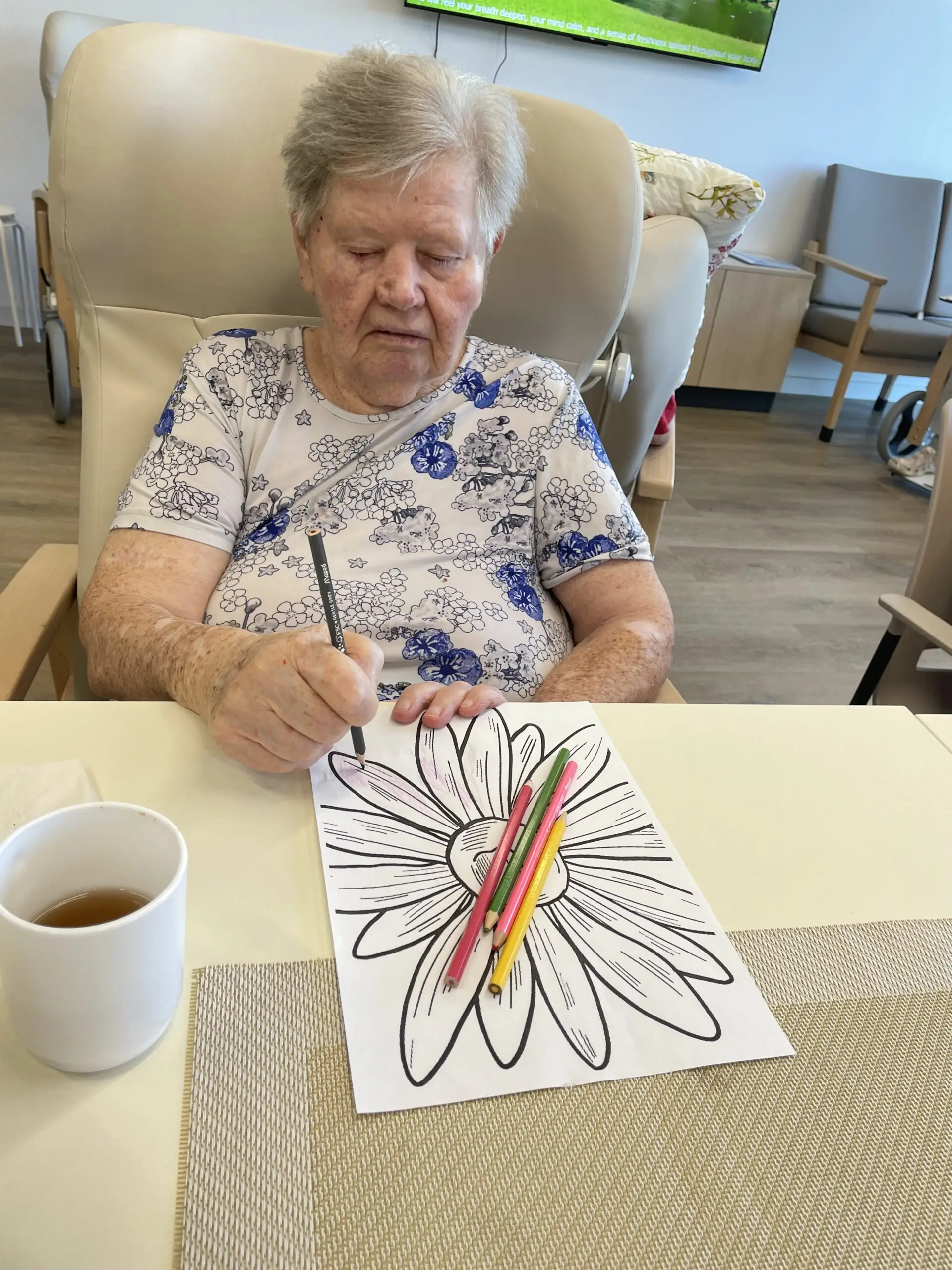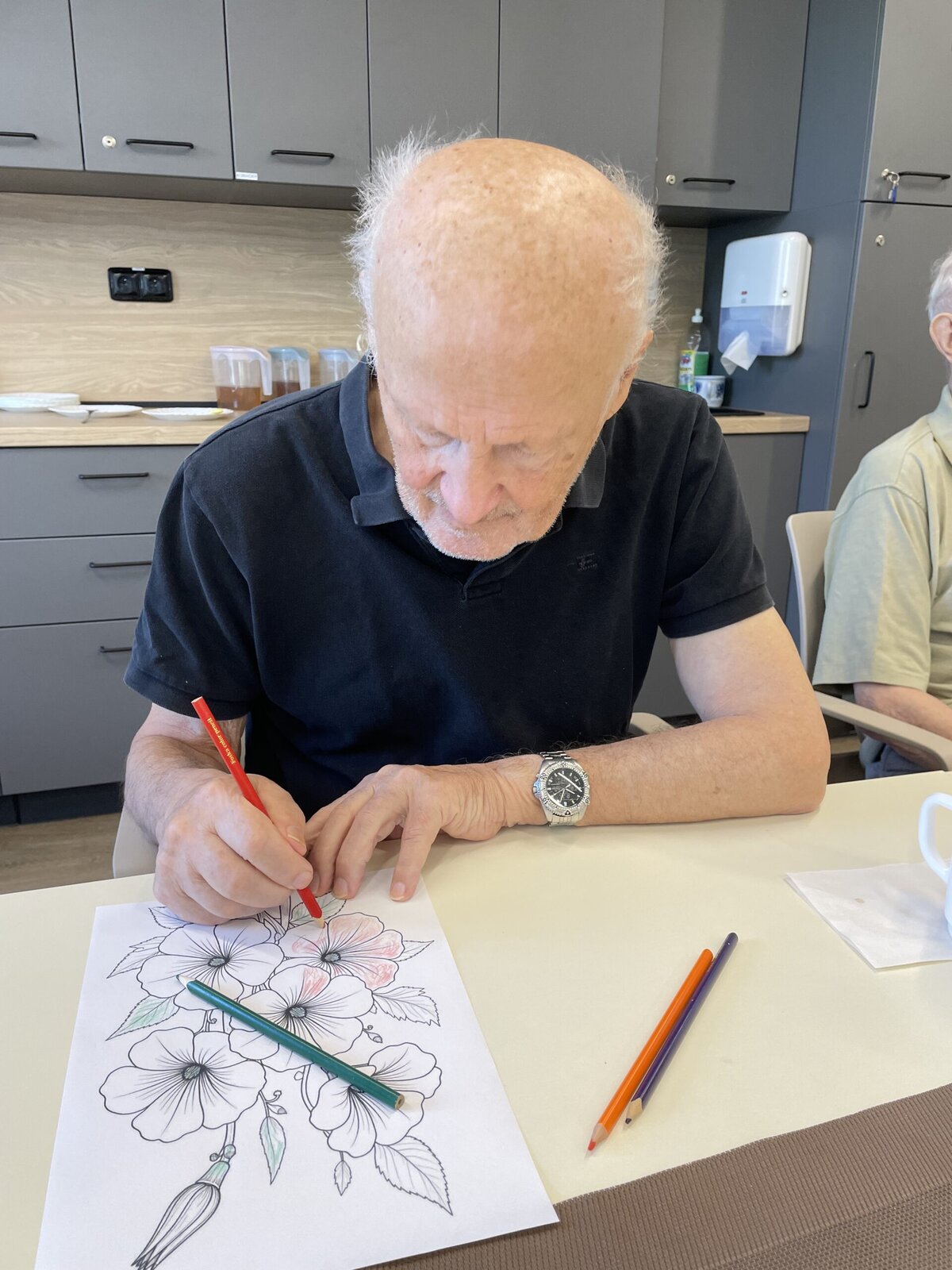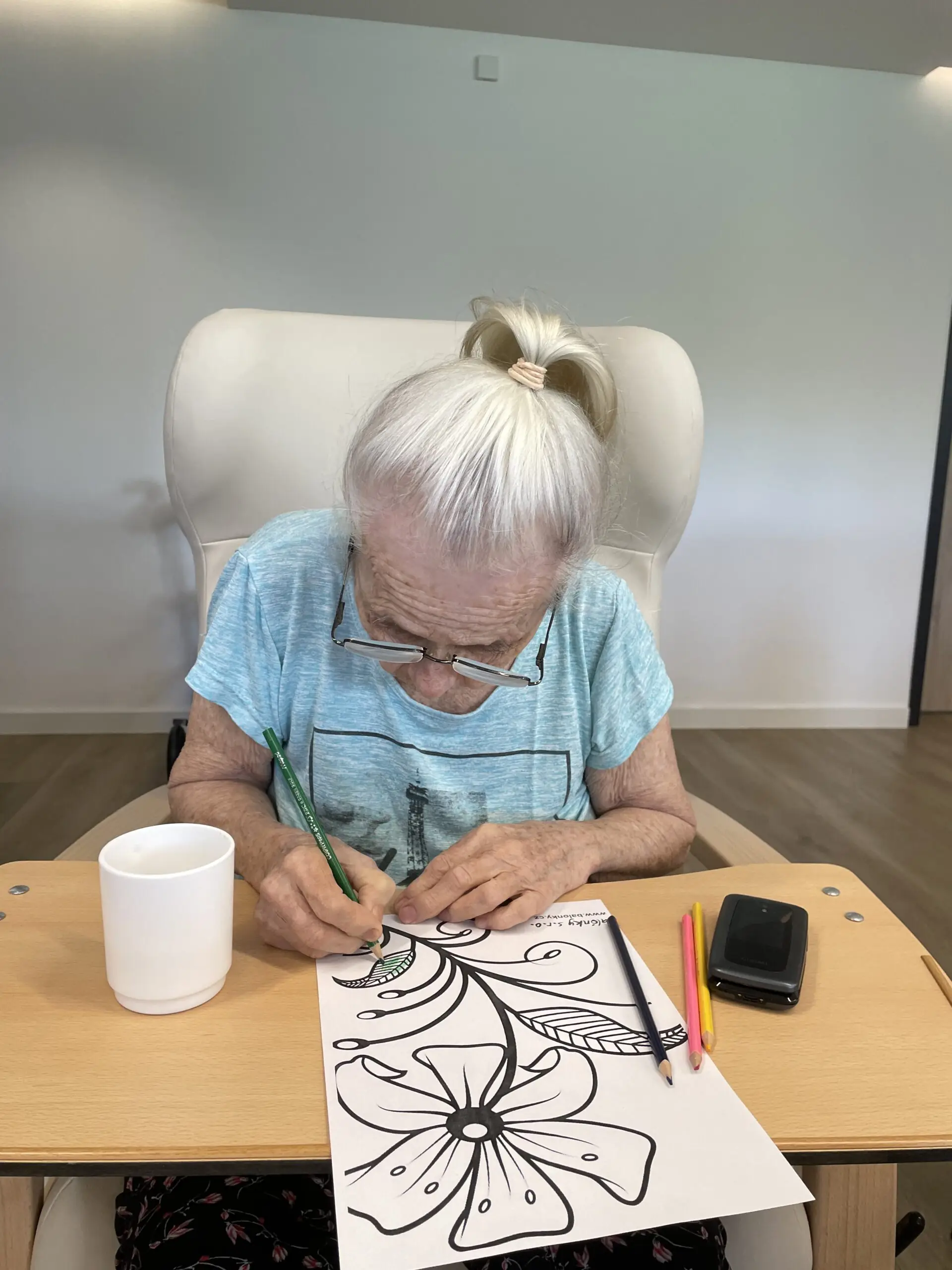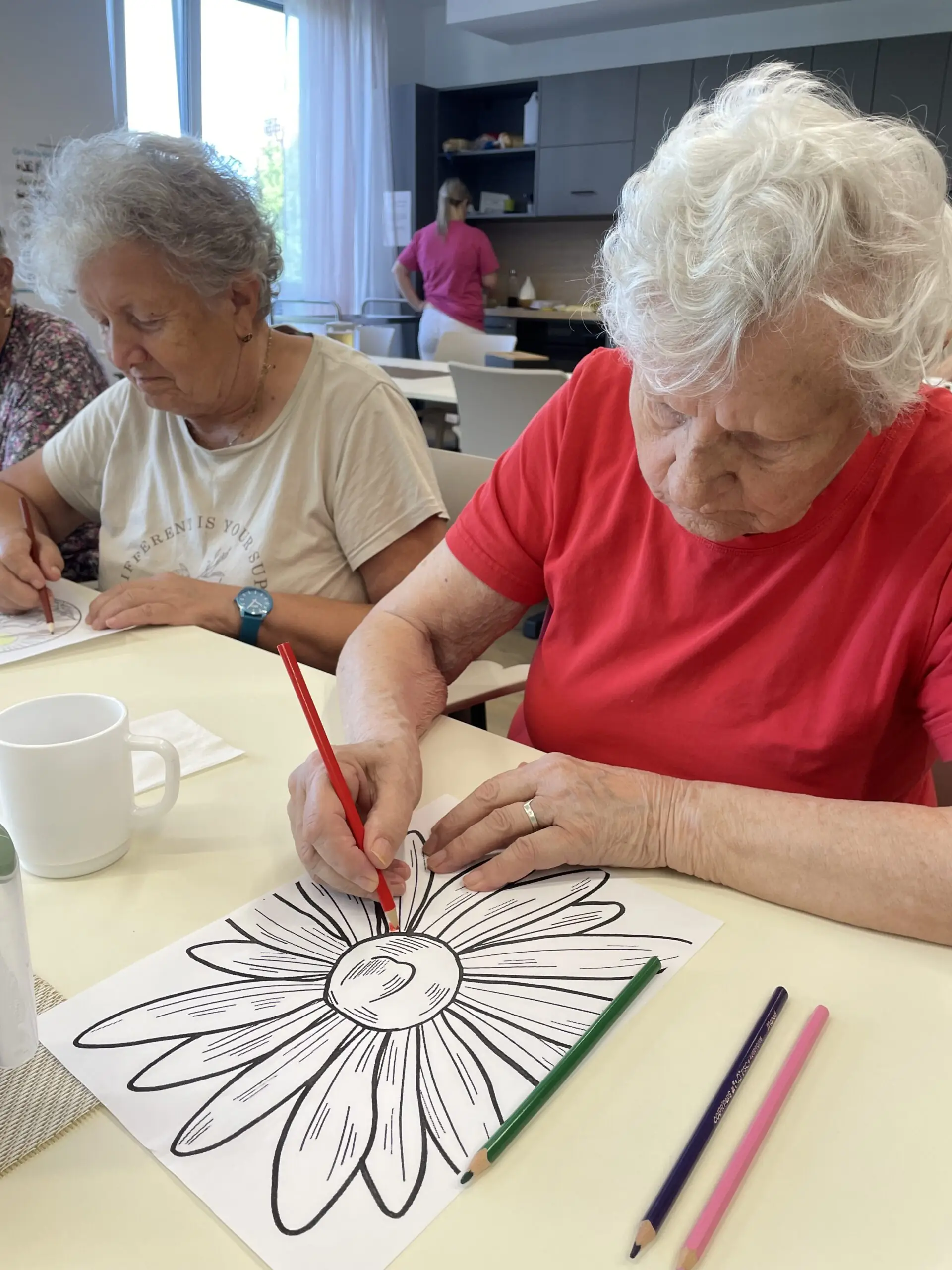 V ALZHEIMER HOME Ostrava – Poruba jsme si dopřáli minulý týden dopoledne plné tvoření. Klienti se pustili do vybarvování omalovánek – a tentokrát sáhli nejen po pastelkách, ale i po voskovkách, které rozjasnily obrázky sytějšími barvami. 🎨