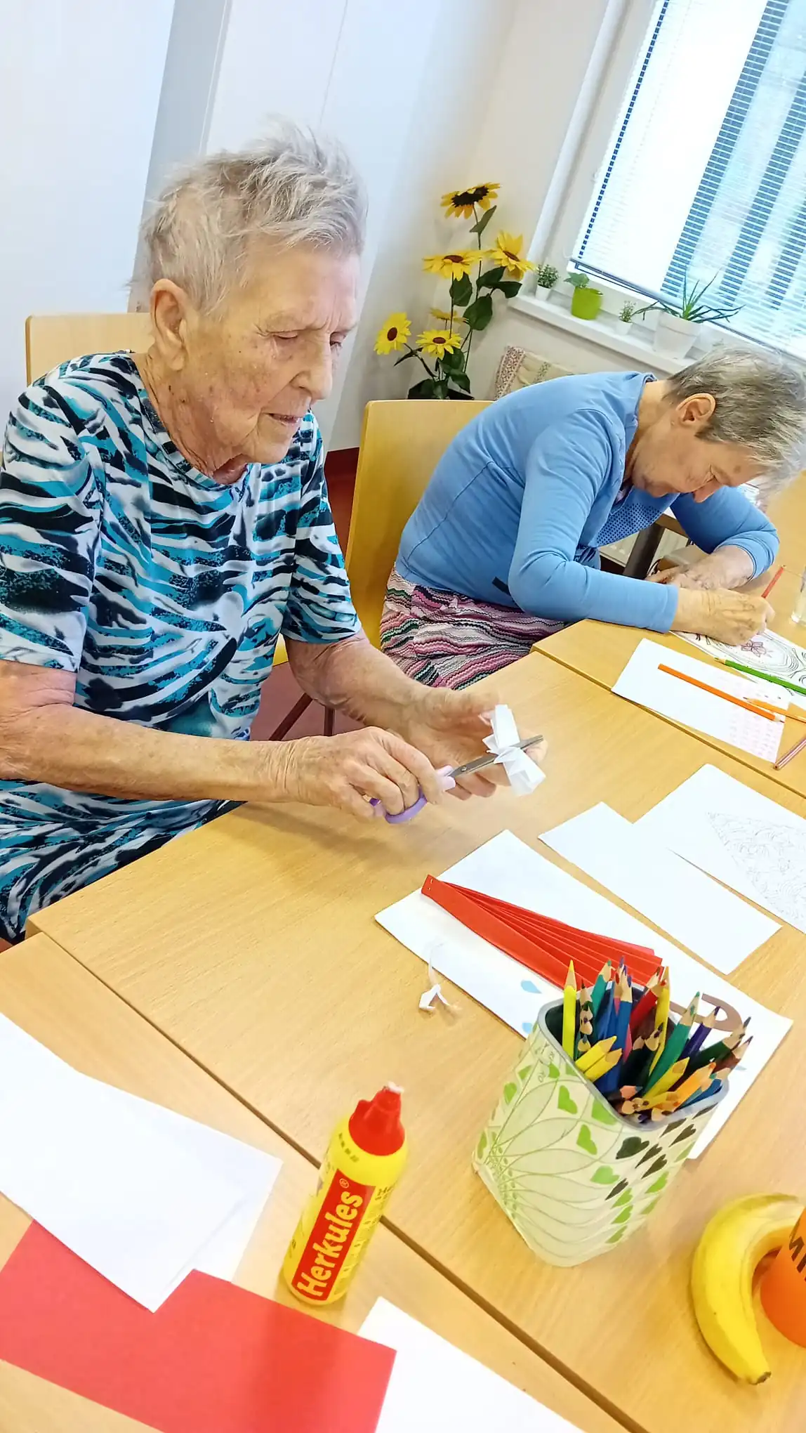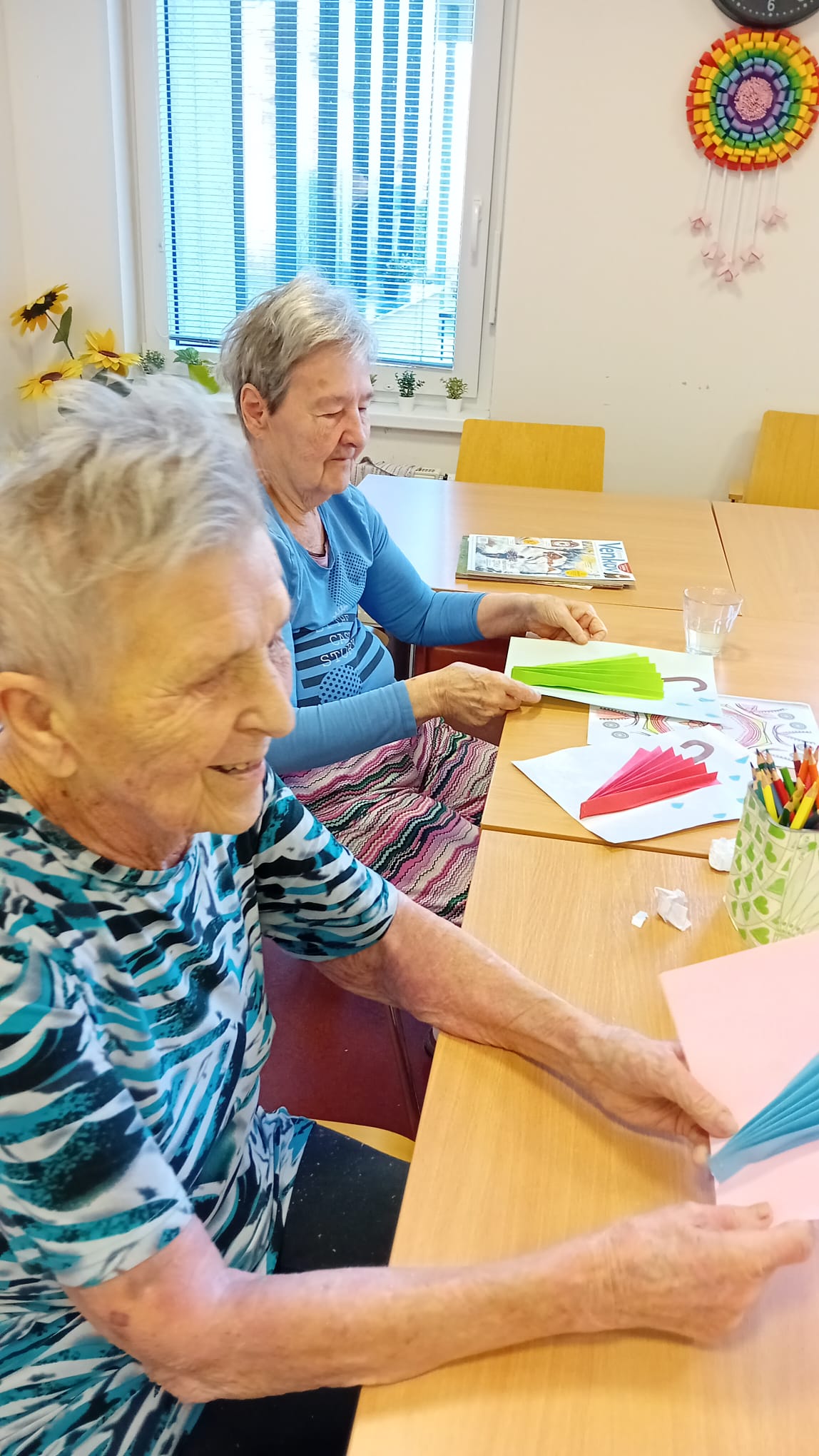 Déšť za oknem, slunce v srdci: Vyrábíme veselé papírové deštníky v ALZHEIMER HOME Nepomuk