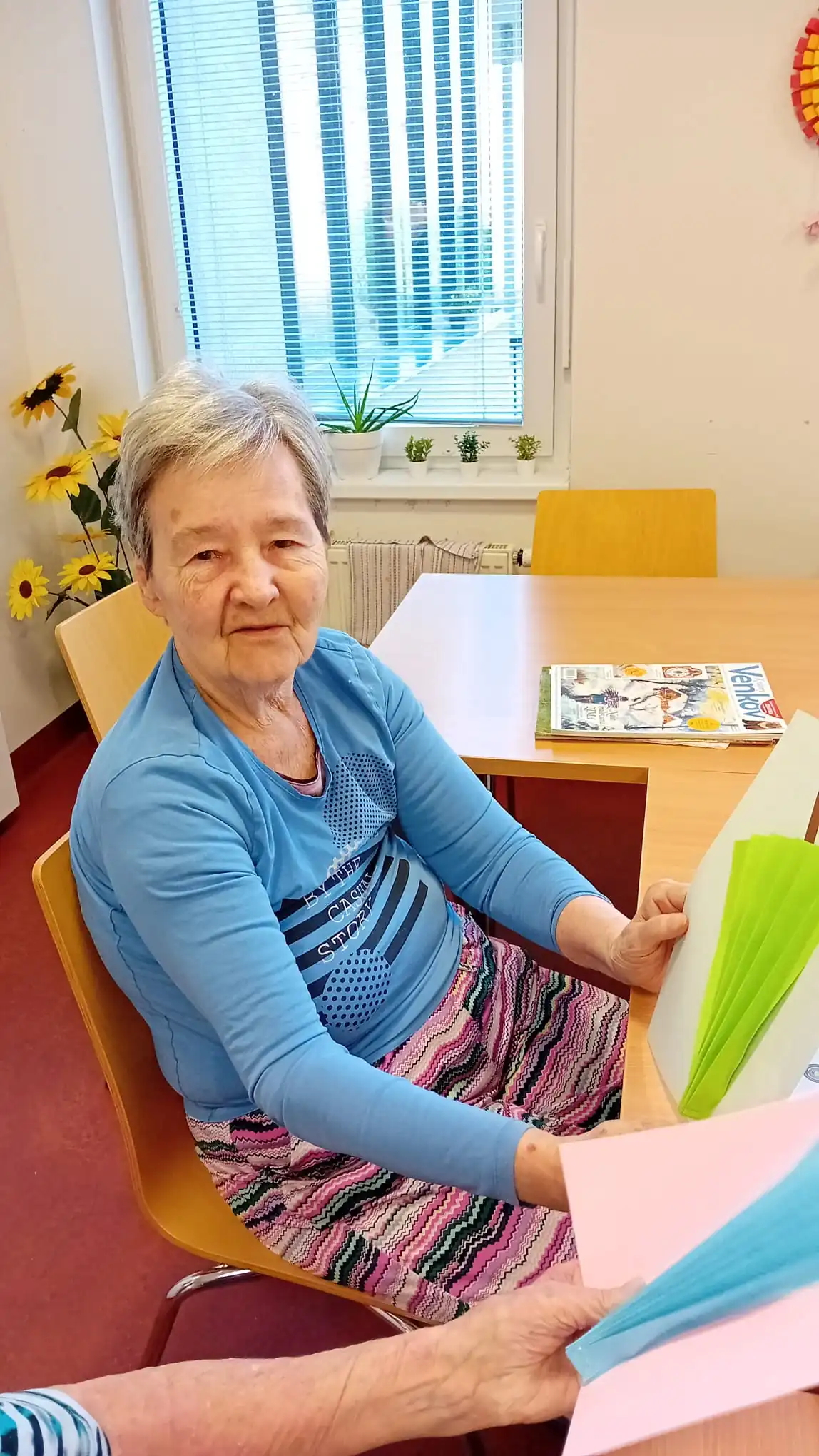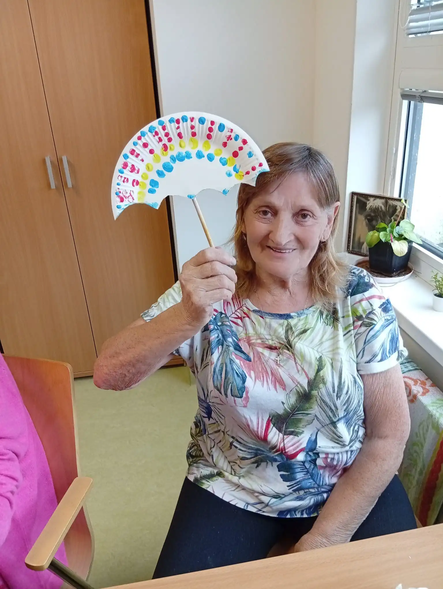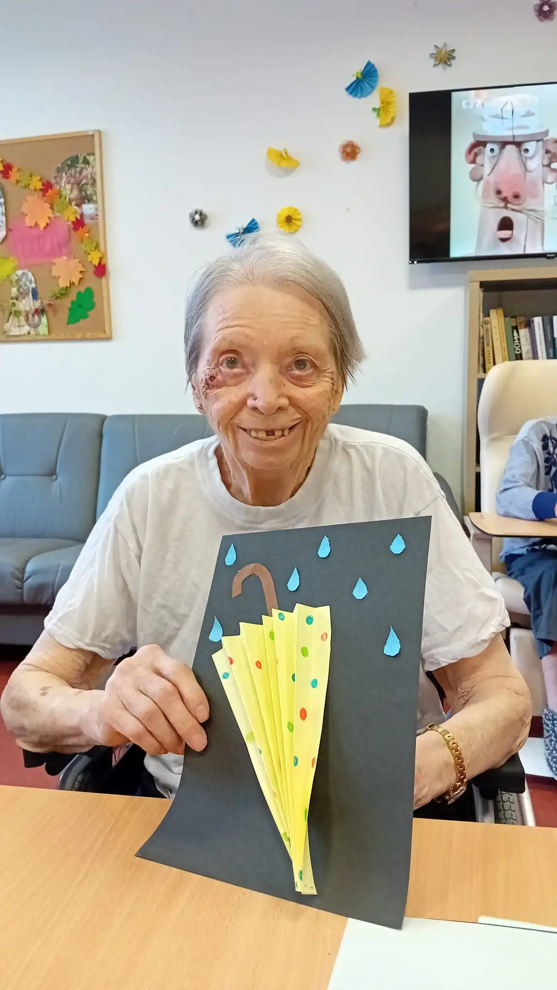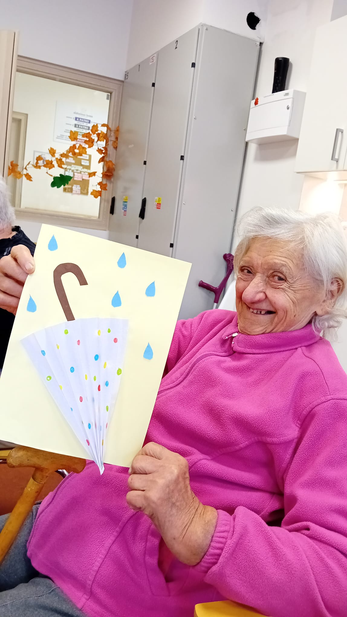 Upršené dny inspirují naše klienti v ALZHEIMER HOME Nepomuk k tématu a s chutí se pustili do výroby veselé papírové výzdoby. Vyráběli barevné deštníky z papíru! ☔ Tato aktivita je skvělá na procvičení jemné motoriky, stříhání a lepení, a navíc přináší radost a barvy do šedivého dne. Vzniklé deštníky nyní zdobí naše prostory a připomínají nám, že i déšť má své kouzlo.
