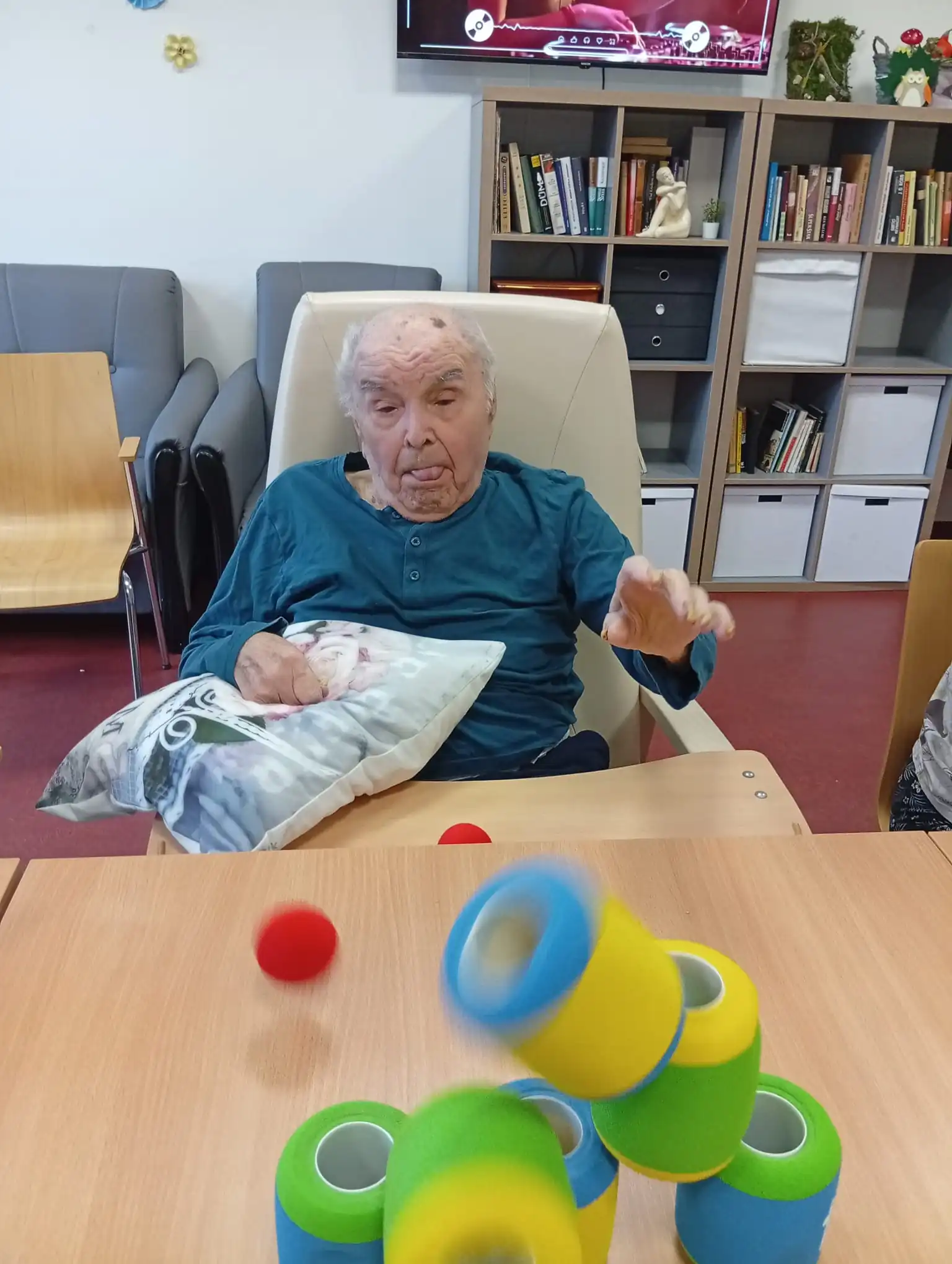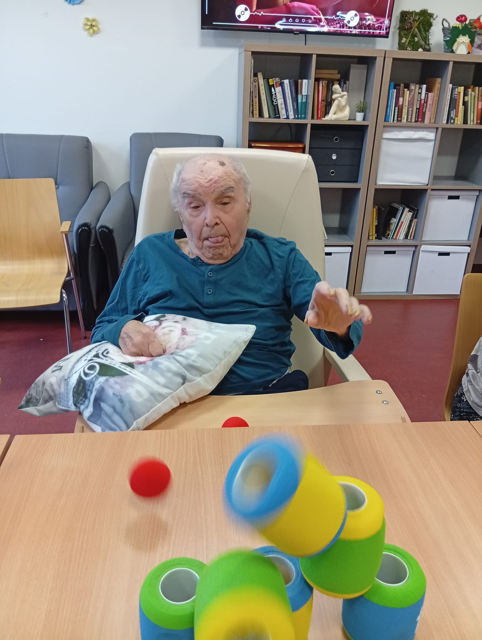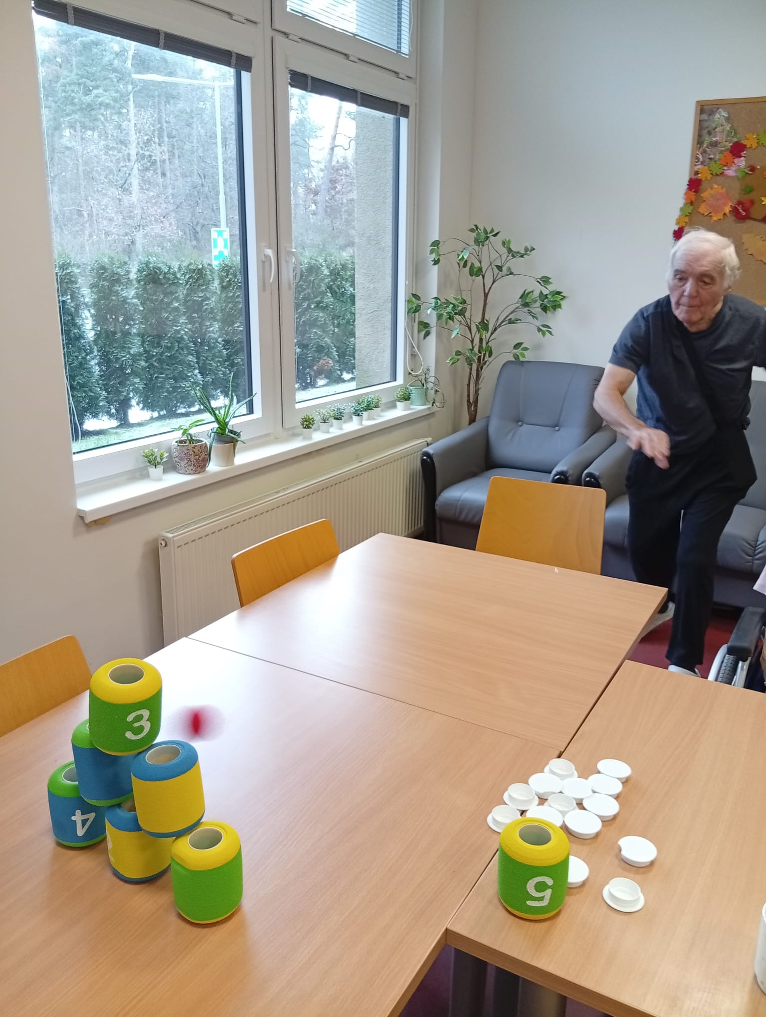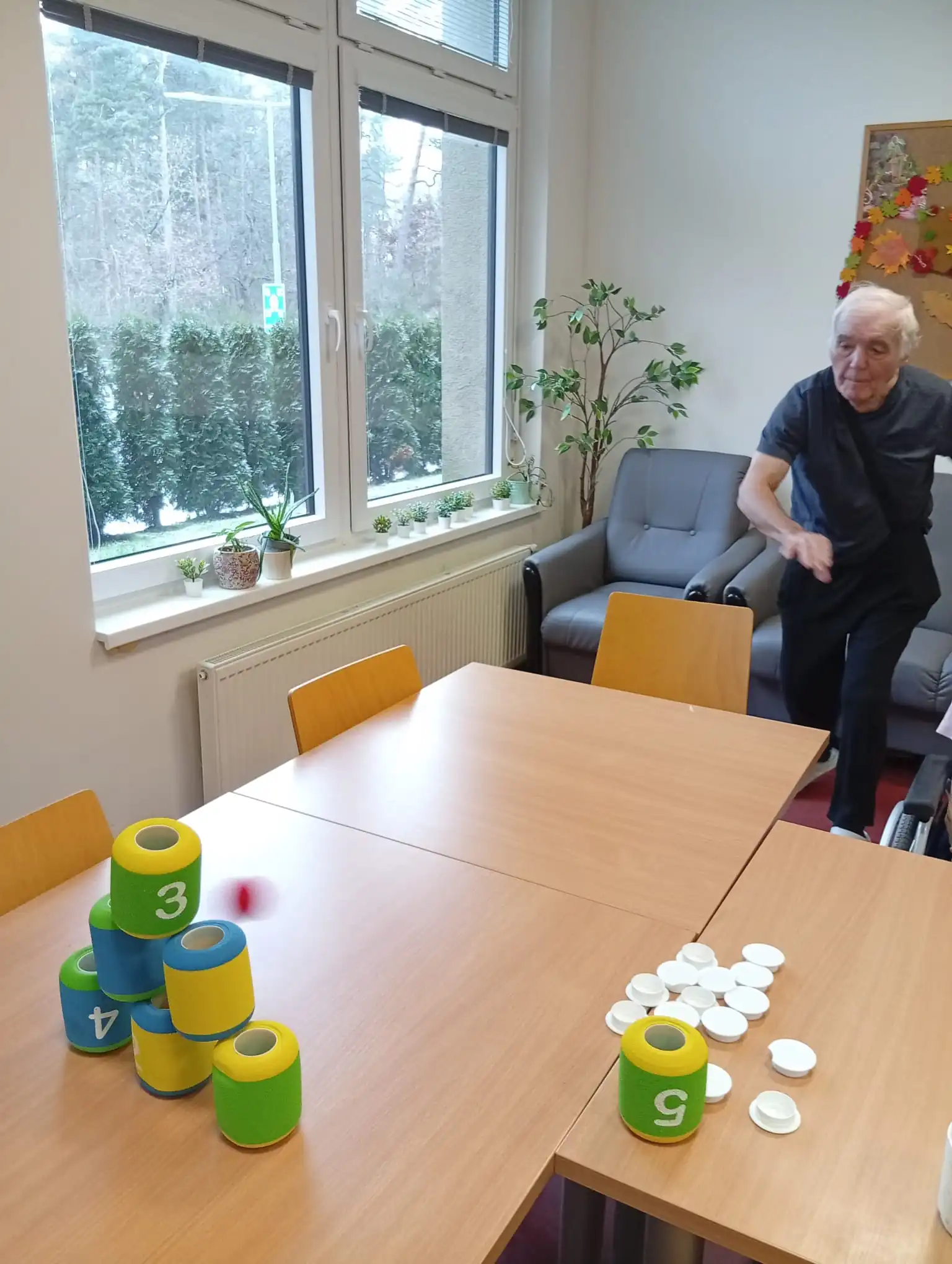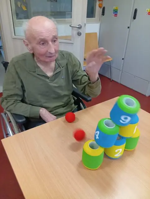 V ALZHEIMER HOME Nepomuk naplno propukla soutěživost a radost z pohybu! 💪 Klienti se zapojili do zábavných sportovních her, které skvěle procvičují koordinaci, přesnost a hrubou motoriku. Na programu bylo shazování plechovek, které vyžadovalo přesný hod, a trefování kroužků na stojánek a oblíbené člověče nezlob se. Každý úspěšný zásah vyvolal obrovskou vlnu potlesku a smíchu! Tyto jednoduché, ale energické hry posilují nejen fyzickou kondici, ale i sociální interakci a dobrou náladu.⚾🎲