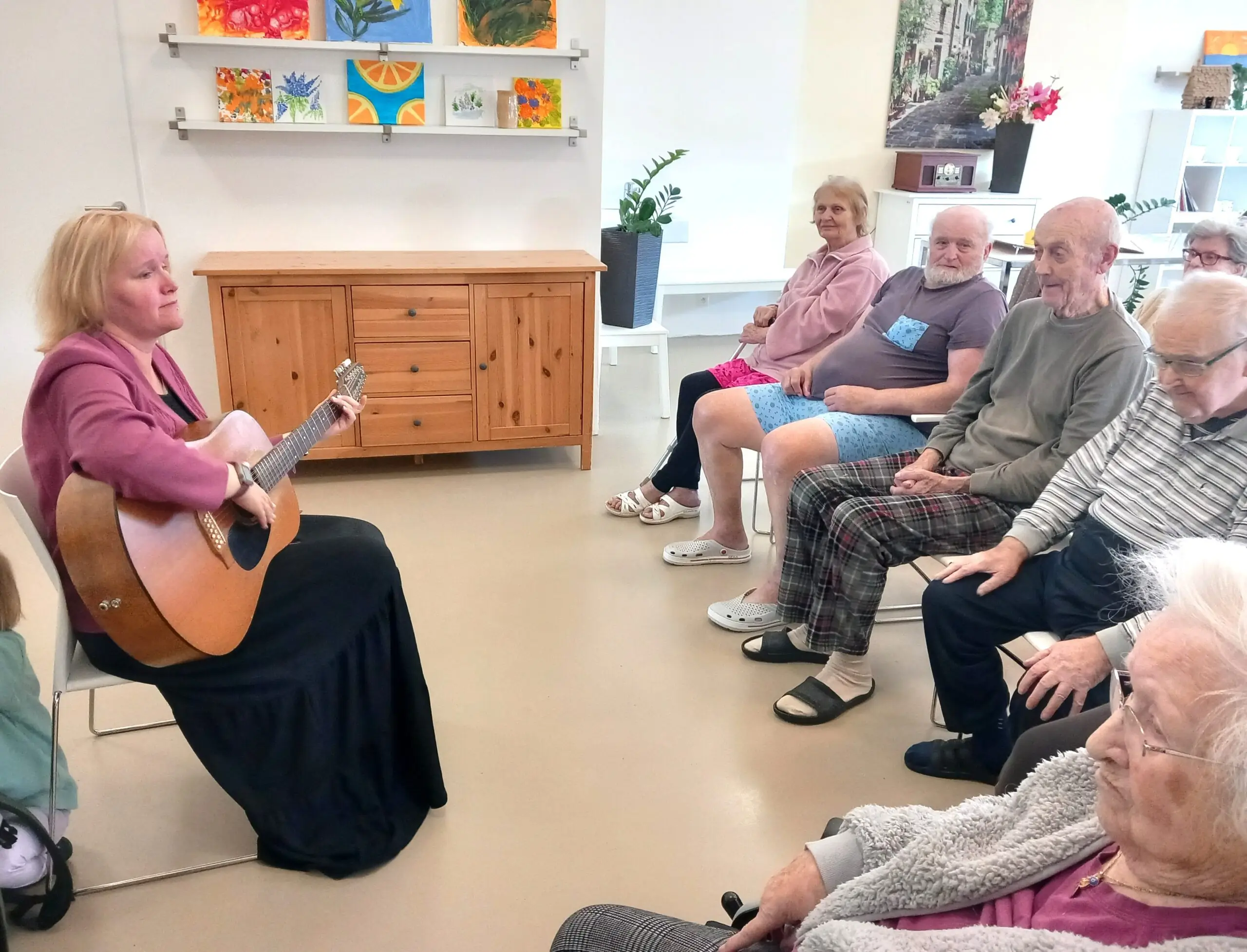 V ALZHEIMER HOME Zátiší jsme s radostí přivítali Alenu Terezii Vítek, která svým hudebním vystoupením na kytaru zpříjemnila chvíle našich klientů. Ti měli možnost vybrat si oblíbené písně, které je potěšily. Atmosféra byla plná zpěvu, smíchu a radosti. Tento hudební zážitek přinesl nejen příjemné chvíle, ale i pozitivní energii, která naplnila celý prostor a zanechala krásné vzpomínky.