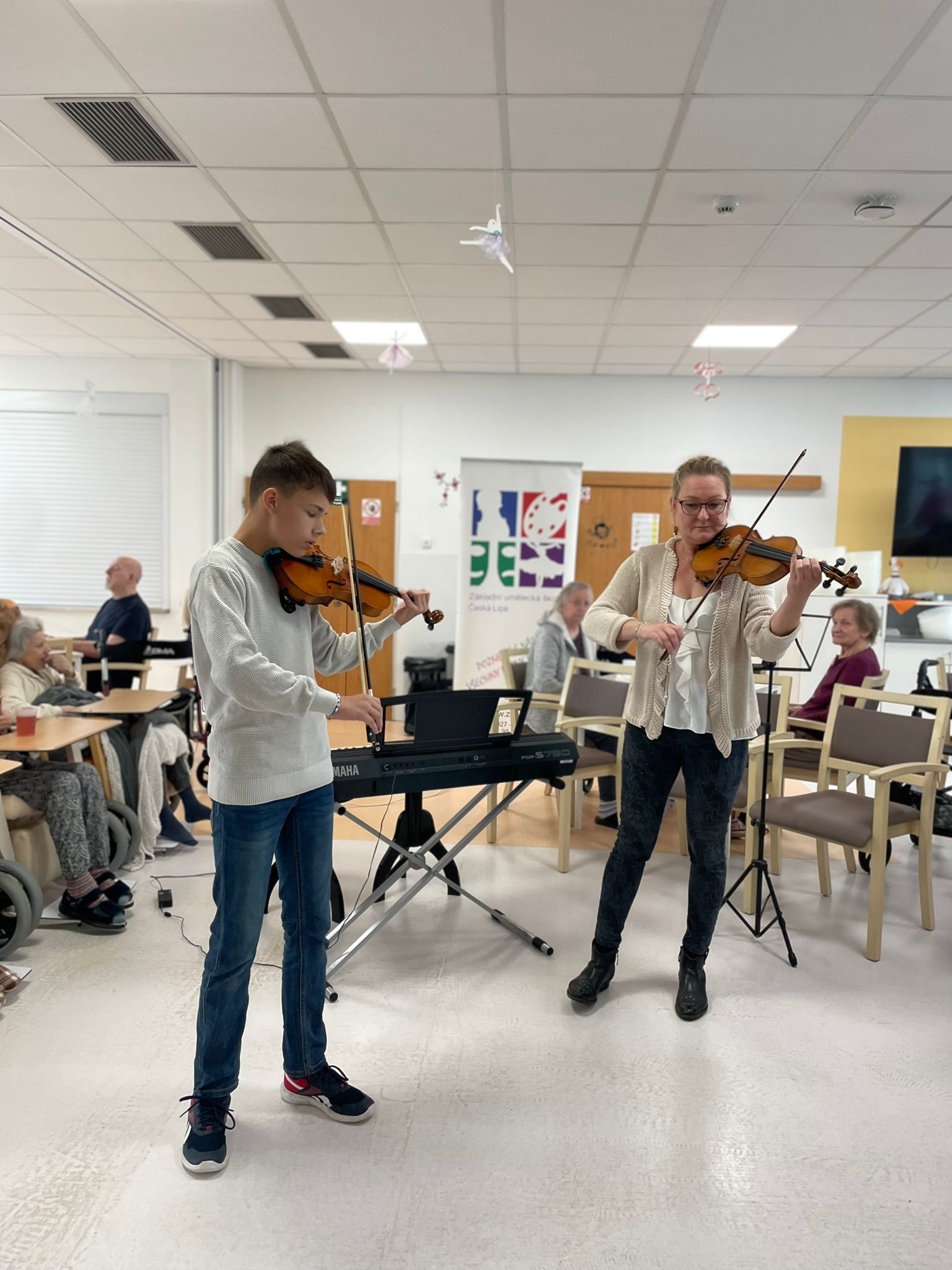 V minulém týdnu navštívili naše klienty ALZHEIMER HOME Česká Lípa žáci ZUŠ. Zahráli na hudební nástroje a zazpívali v doprovodu svých učitelek. Nakonec si s našimi klienty zazpívali několik lidových písniček.