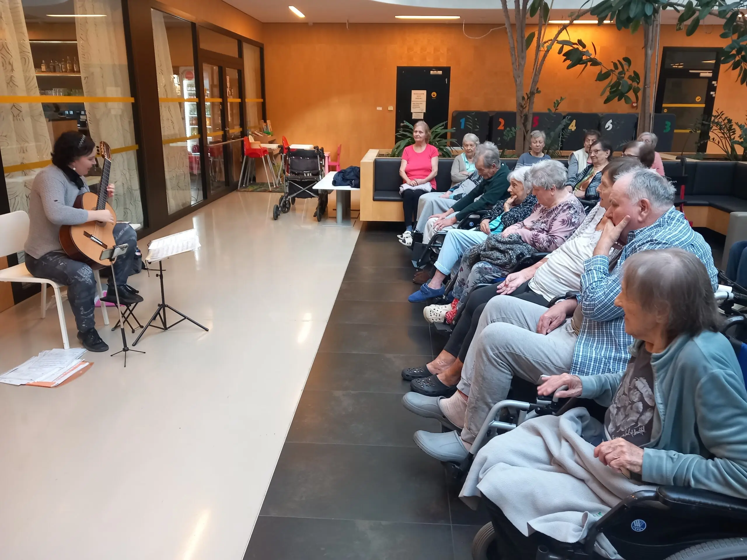 V ALZHEIMER HOME Zátiší se v atriu uskutečnil kytarový koncert Lucie Šťavíkové. Klienti si mohli vychutnat známé lidové písně, do kterých se s radostí zapojili zpěvem i potleskem. Program doplnily i krásné klasické skladby, které navodily příjemnou a klidnou atmosféru. Hudební vystoupení přineslo radost a oživilo den všem přítomným. Děkujeme Lucii za krásný kulturní zážitek.
