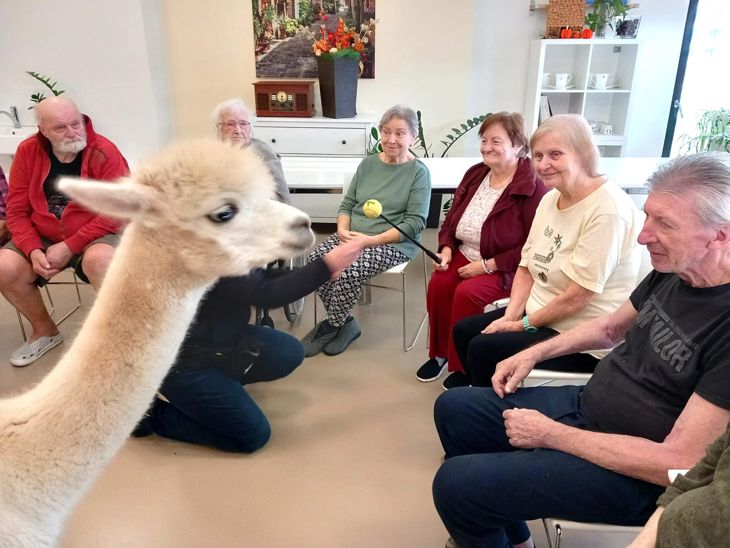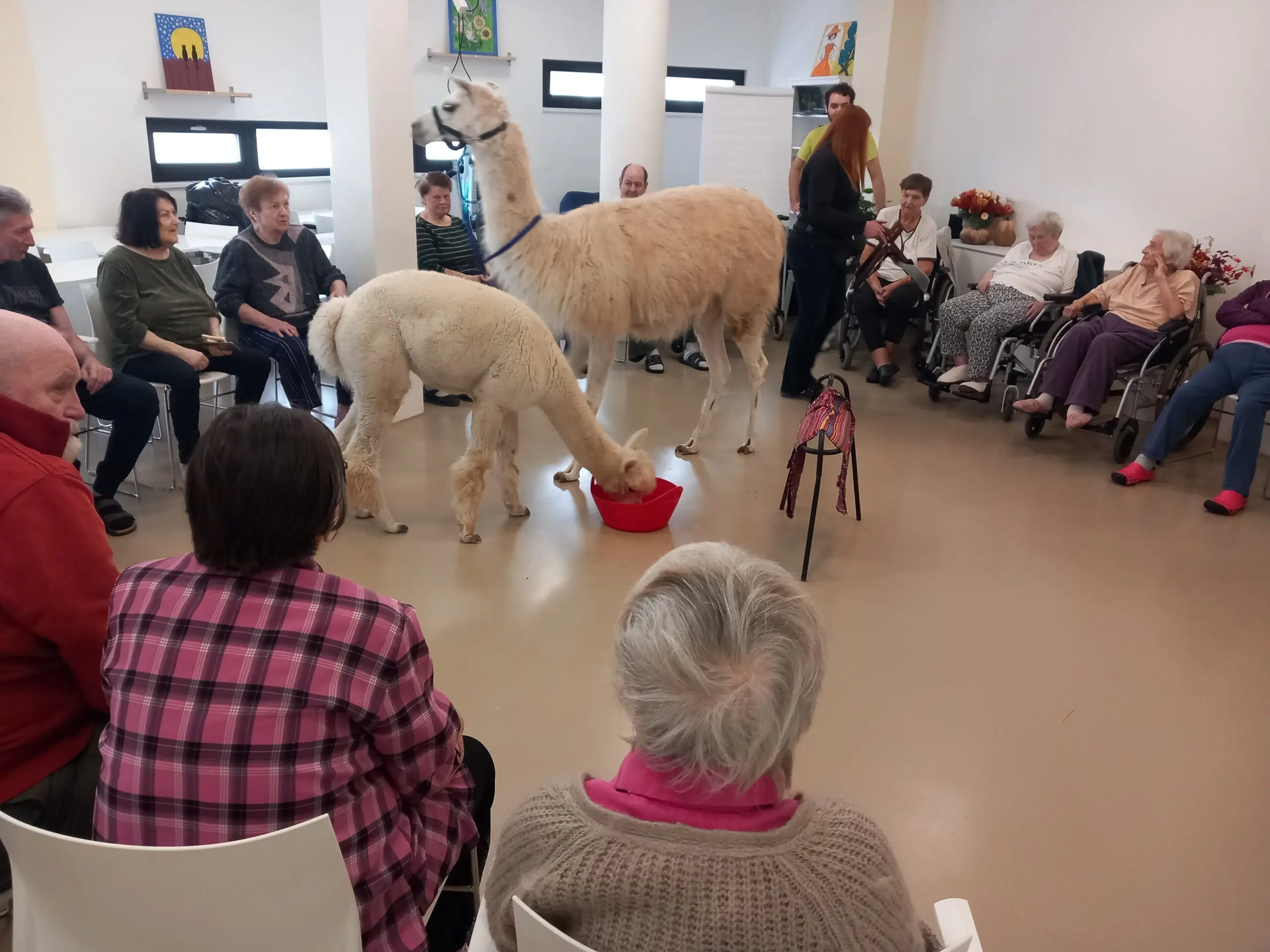 Lamí kluci svou návštěvou potěšili naše klienty z ALZHEIMER HOME Zátiší. Jejich přítomnost přinesla do zařízení radostnou a klidnou atmosféru. Klienti si mohli zvířata pohladit, krmit je a strávit s nimi příjemné chvíle. Setkání s lamami představovalo milé zpestření každodenního programu a poskytlo všem přítomným krásný zážitek, na který budou ještě dlouho vzpomínat.