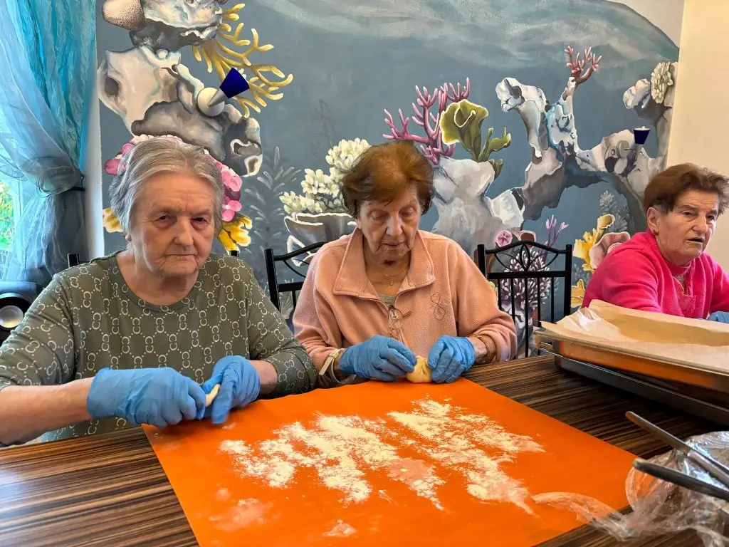 Všem to šlo krásně od ruky, povídali jsme si o tom, co kdo rád peče, sdíleli recepty i vzpomínky z dětství a užili si společné dopoledne plné pohody.