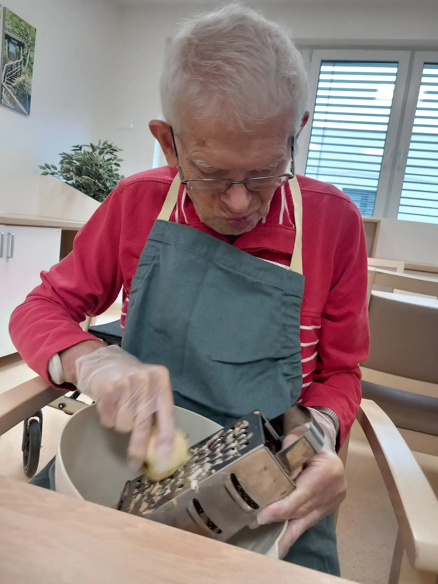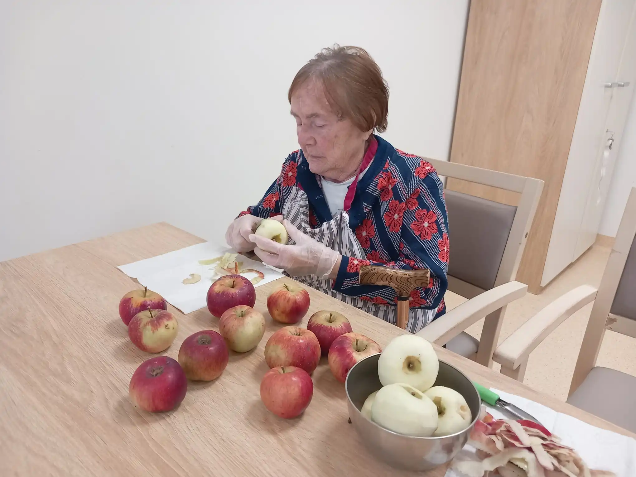 Nastal čas sběru některých odrůd jablek a tak jedna z našich aktivizačních pracovnic pár kousků doma ze zahrady zachránila před cestou do pálenice a donesla je k nám do ALZHEIMER HOME Ostrava, kde společnými silami s klienty upekli záviny a další dobroty. A pozor, tentokrát se činili hlavně pánové ! Kalvádos je sice fajn, ale u nás frčí sladkosti a vždycky se po nich jen zapráší. 😁