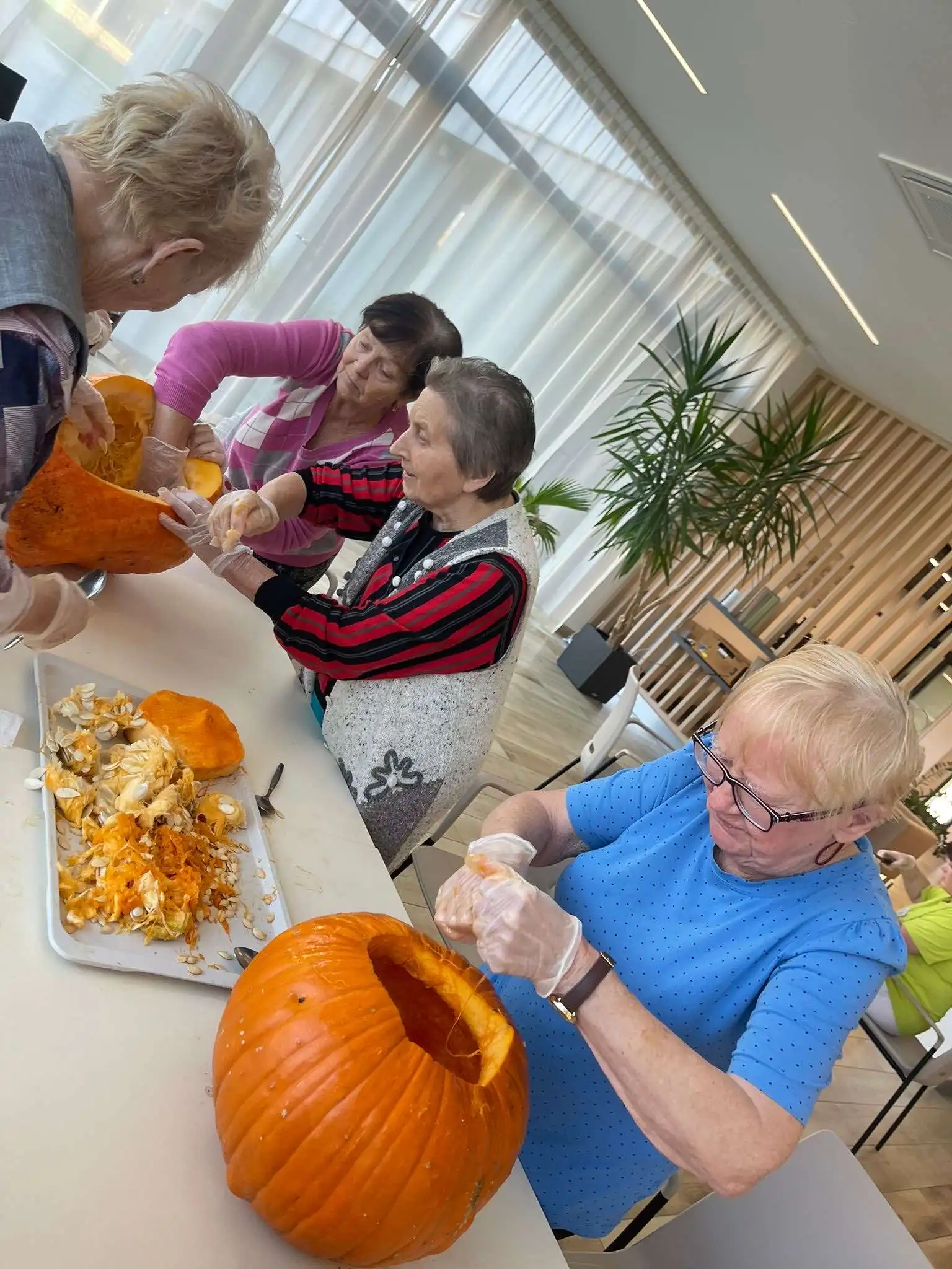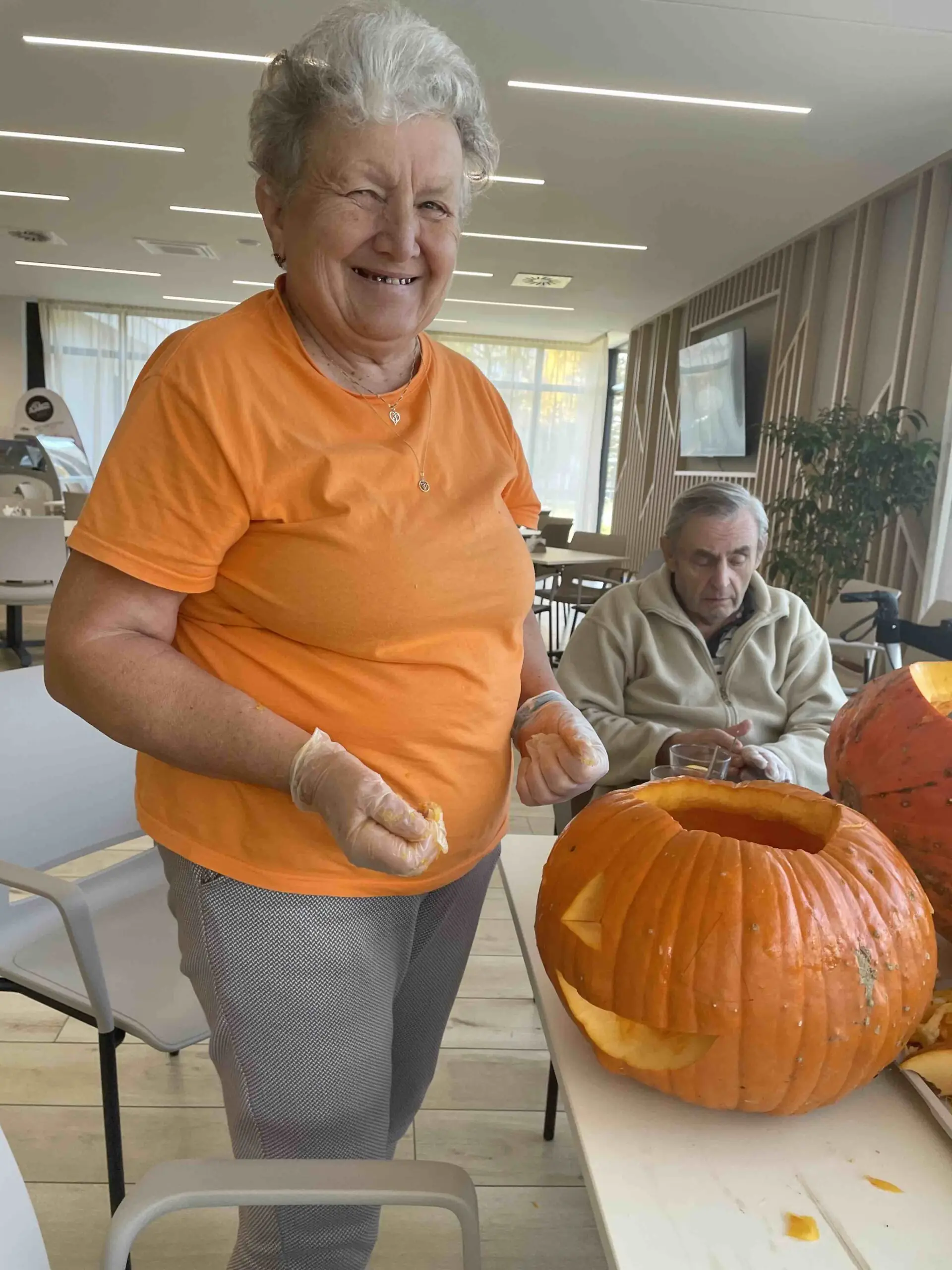 Podzimní čas jsme si zpříjemnili v ALZHEIMER HOME Ostrava – Poruba dlabáním dýní, které provoněly náš domov. Klienti tvořili dýňové lucerny, smáli se a sdíleli mezi sebou vzpomínky na to, jak tyto tradice kdysi prožívali se svými rodinami. 🎃