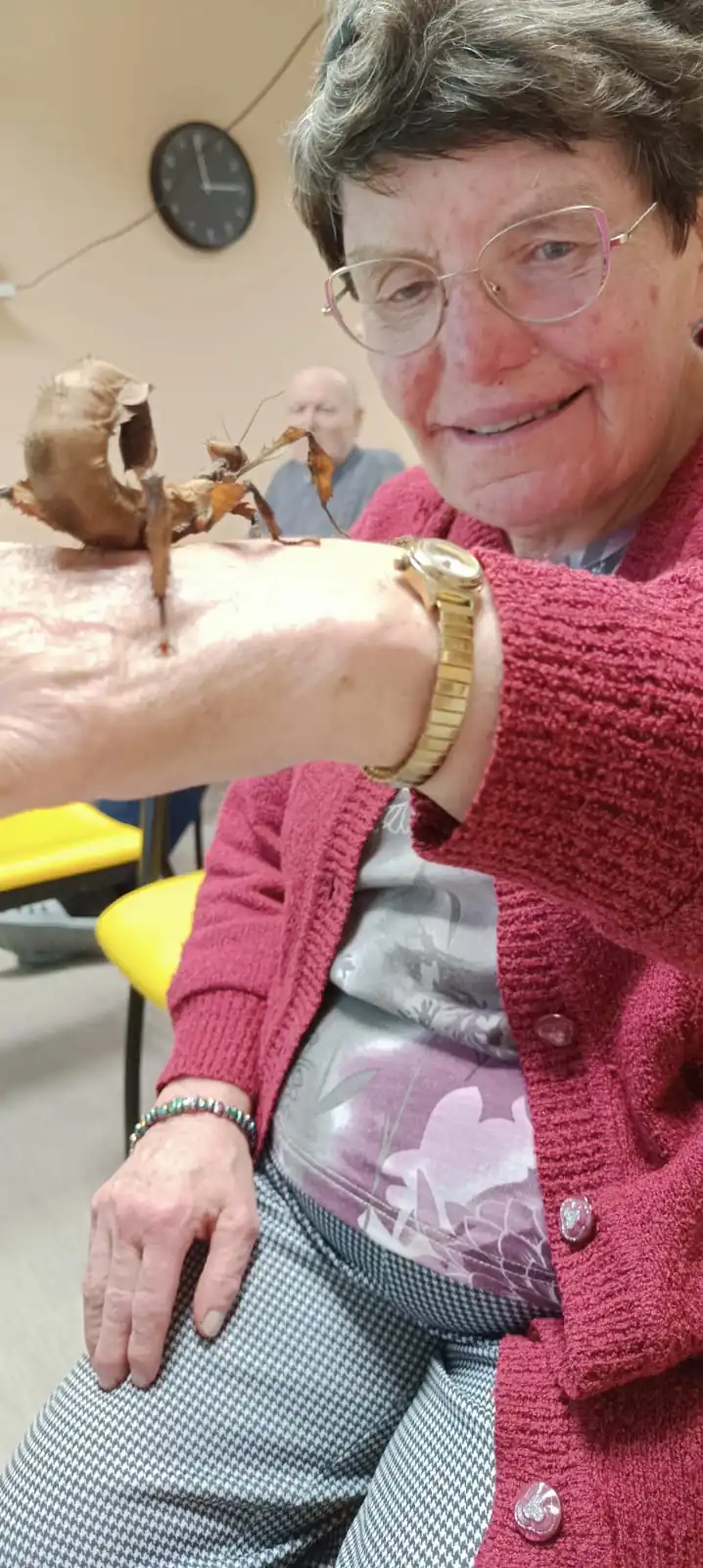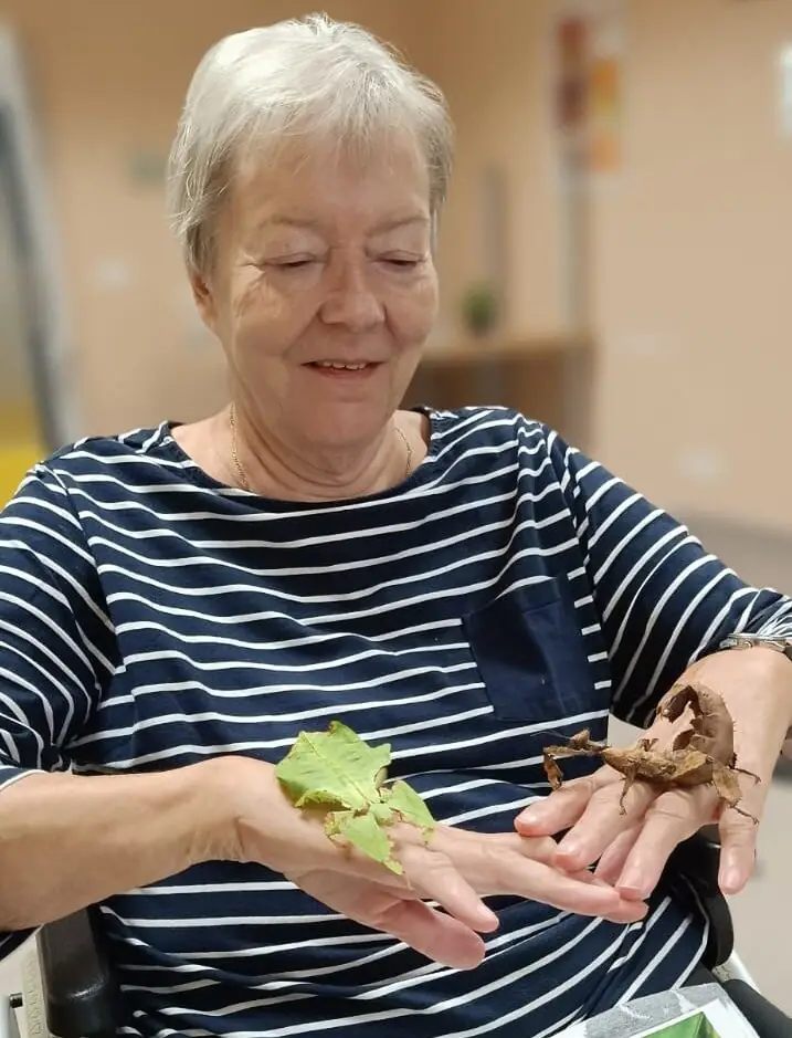Přednáška o strašilkách v ALZHEIMER HOME Modřany byla opravdu jedinečná! Dozvěděli jsme se spoustu zajímavostí o těchto exotických tvorech – odkud pocházejí, čím se živí a jak se dokážou dokonale maskovat v přírodě. Největším zážitkem ale byla názorná ukázka živých strašilek. Odvážní klienti si je dokonce nechali přejít po rukou a pozorovali jejich pomalé, opatrné pohyby. Atmosféra byla plná zvídavosti i obdivu k těmto zvláštním, ale půvabným tvorům.👌🧡🦗