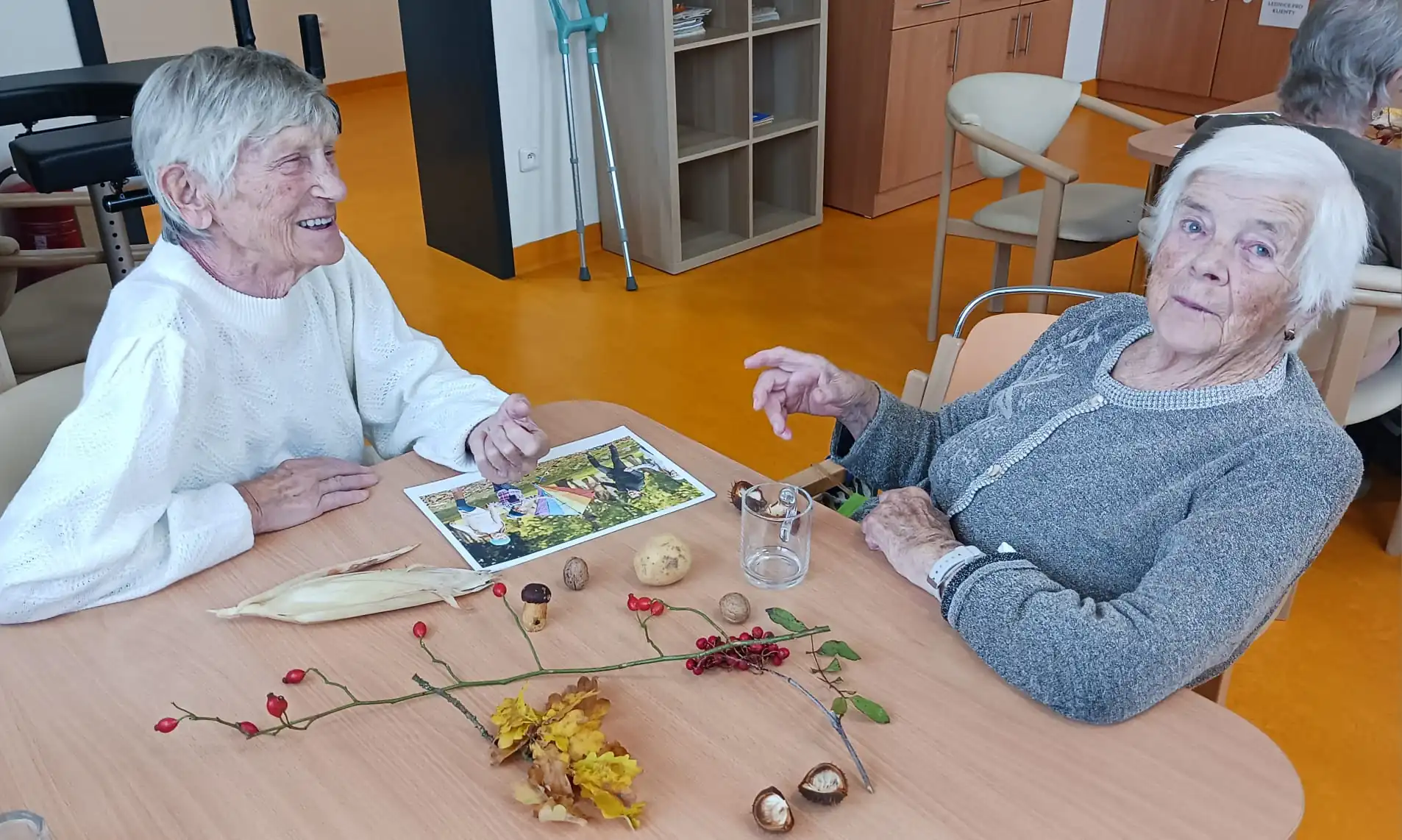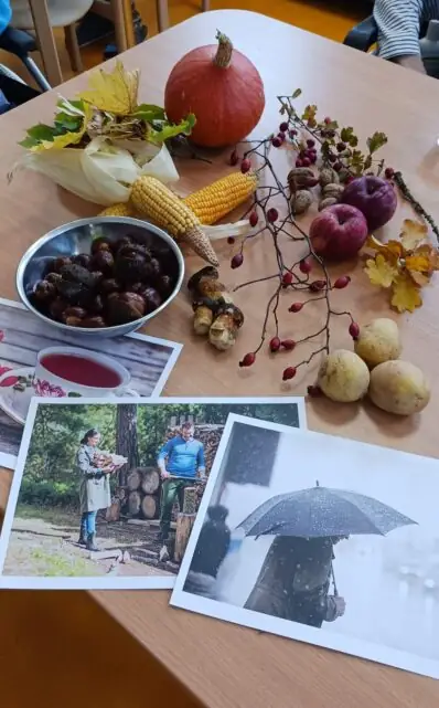 V ALZHEIMER HOME Kamenice nad Lipou jsme si připomínali krásu podzimních dnů prostřednictvím reminiscenční aktivity. Klienti vzpomínali na procházky v barevném listí, sklizeň ze zahrádky či podzimní práce na poli. Společně jsme si povídali nad tematickými obrázky a přírodninami, které nám přiblížily atmosféru tohoto období.