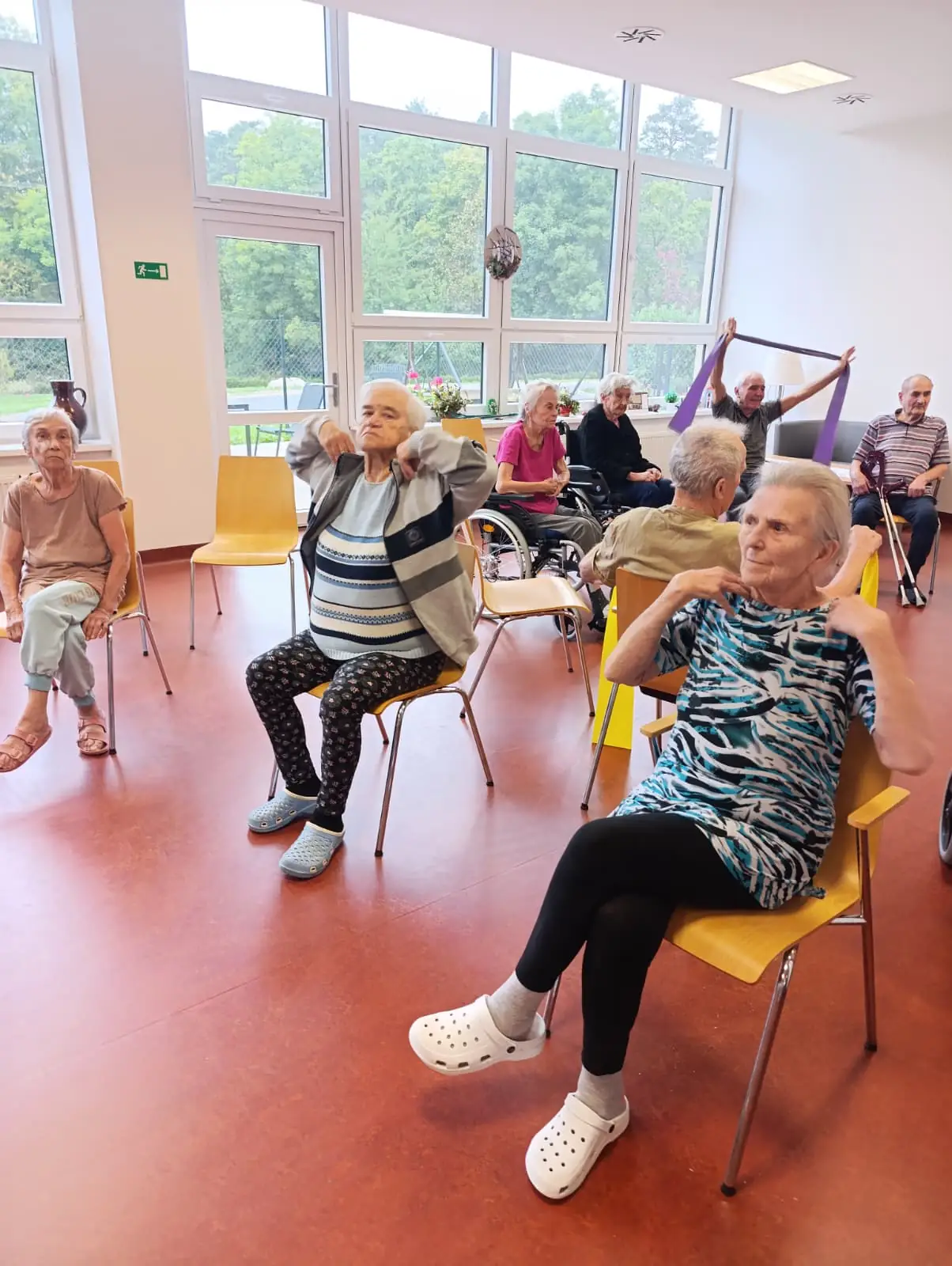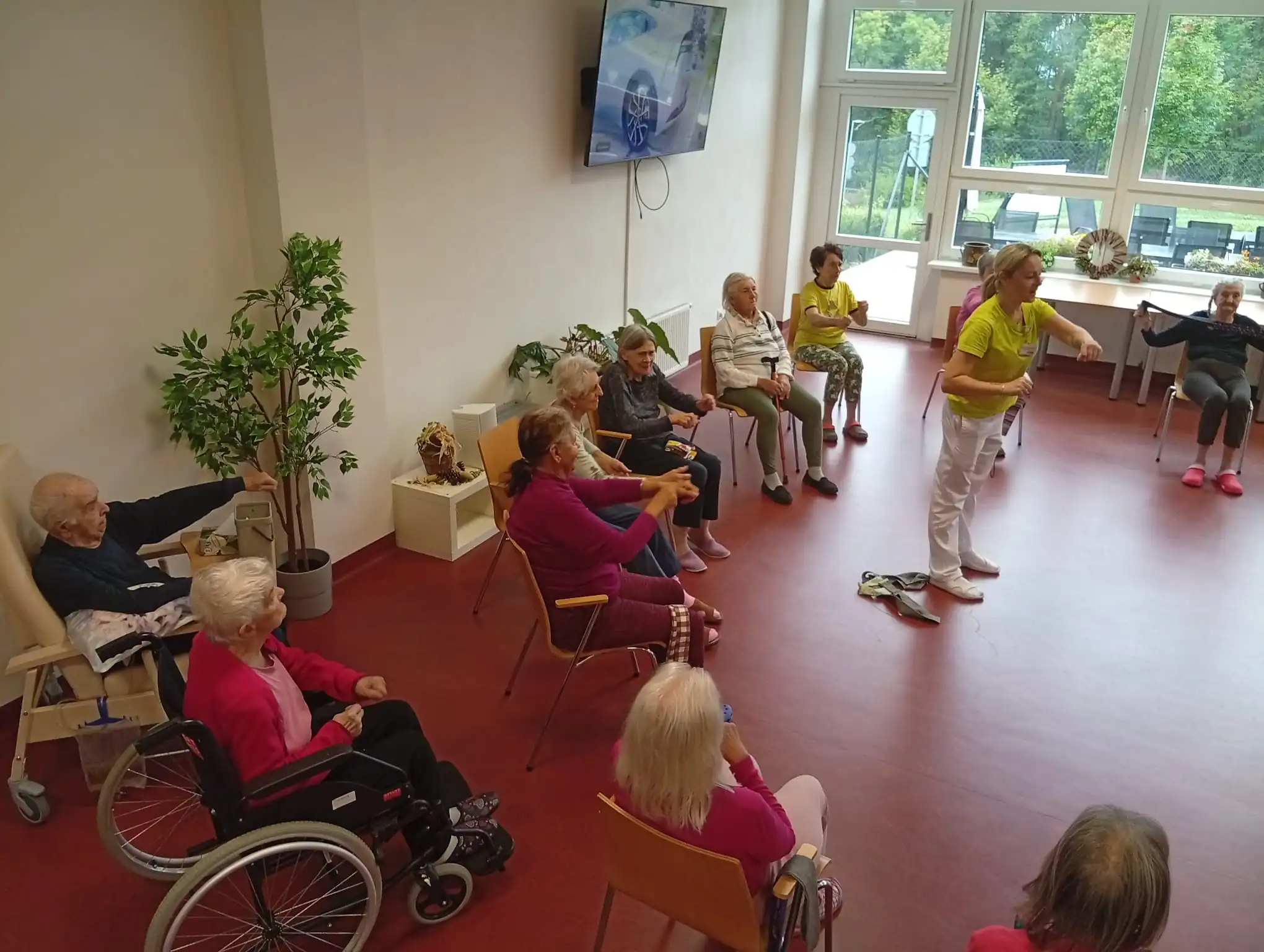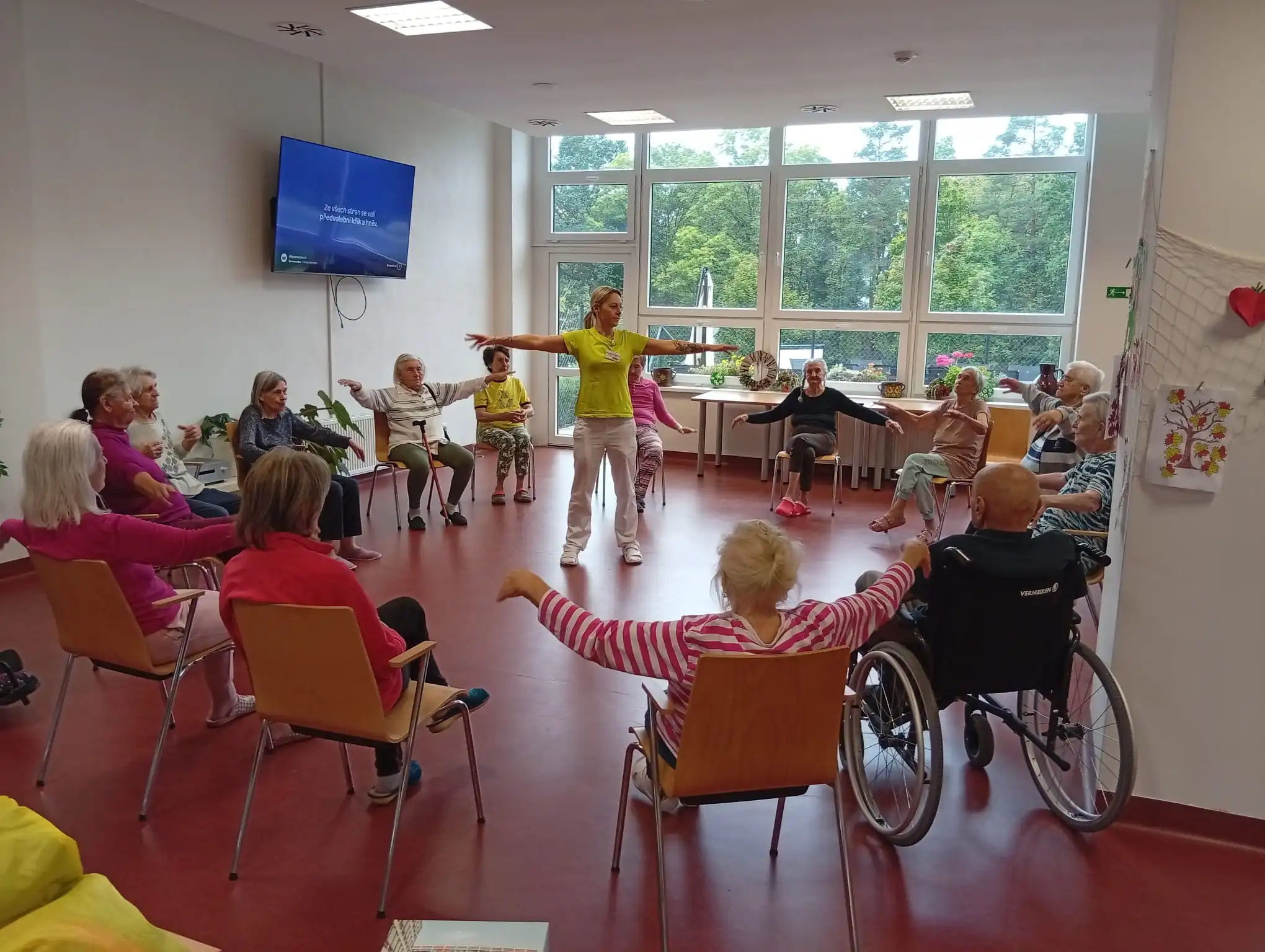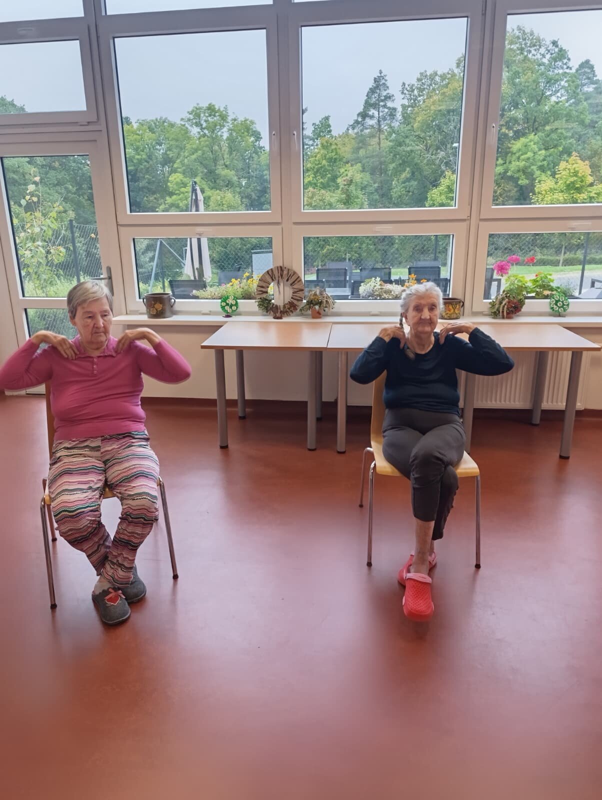 Dopoledne v ALZHEIMER HOME Nepomuk bylo plné pořádnou dávkou pohybu a dobré nálady! 💪 Naši klienti se pustili do pravidelného cvičení, které jim pomáhá udržovat vitalitu a flexibilitu. Protahovali jsme tělo, procvičovali klouby a smáli se u toho. Používáme lehká a bezpečná cvičení v sedě, která jsou pro každého zvládnutelná. Pohyb je klíčový pro udržení kondice a dobrého rozpoložení.