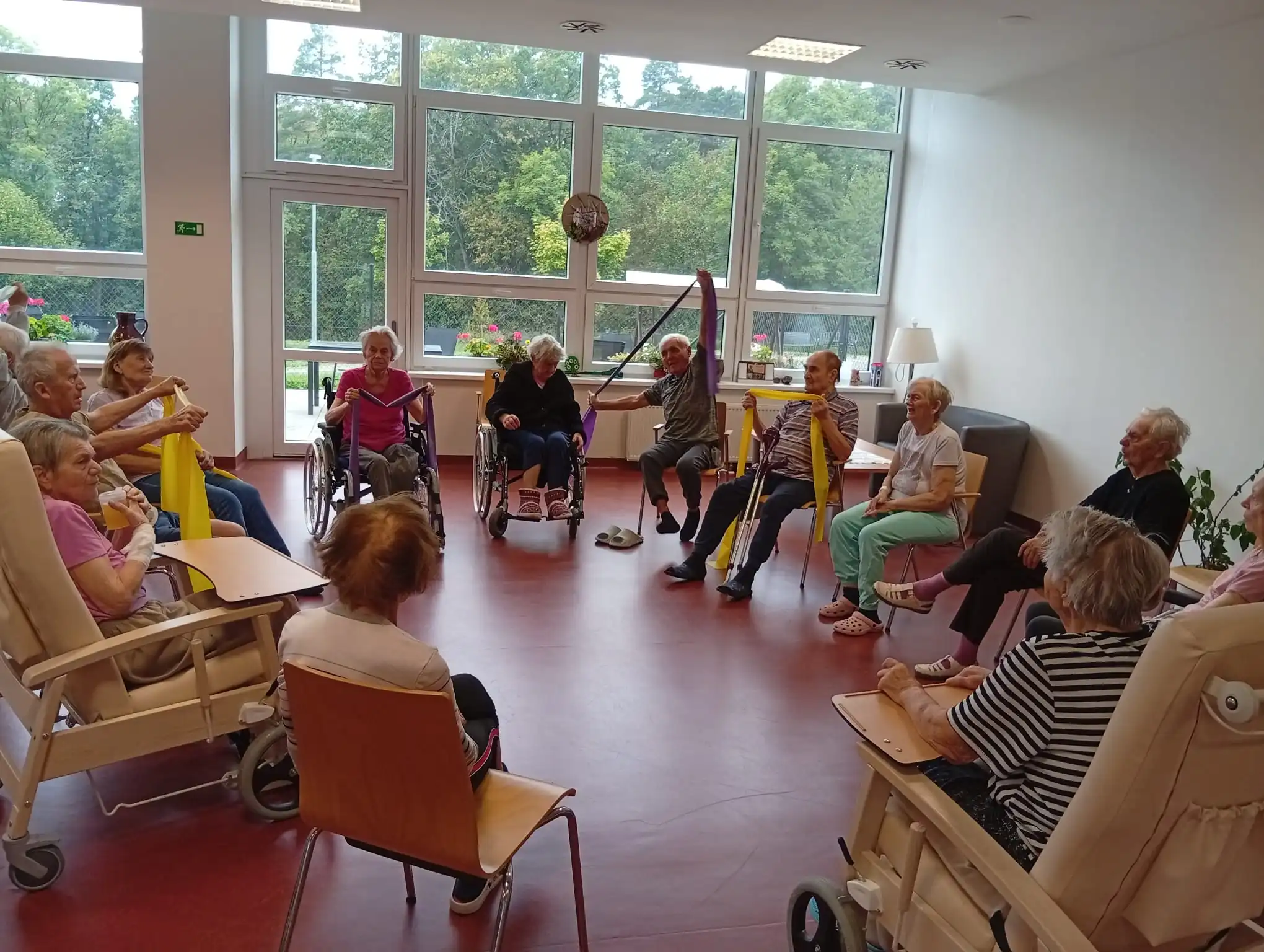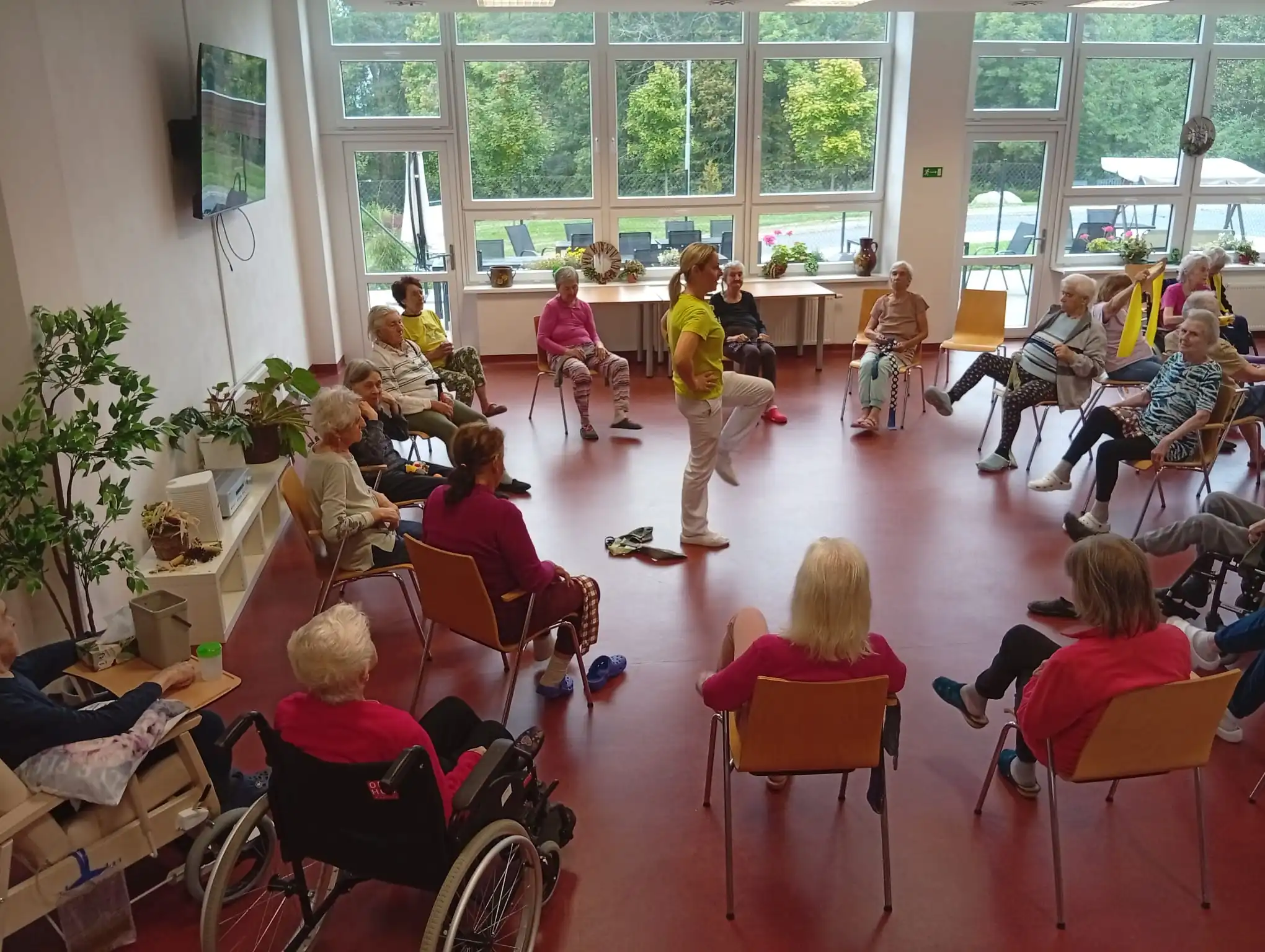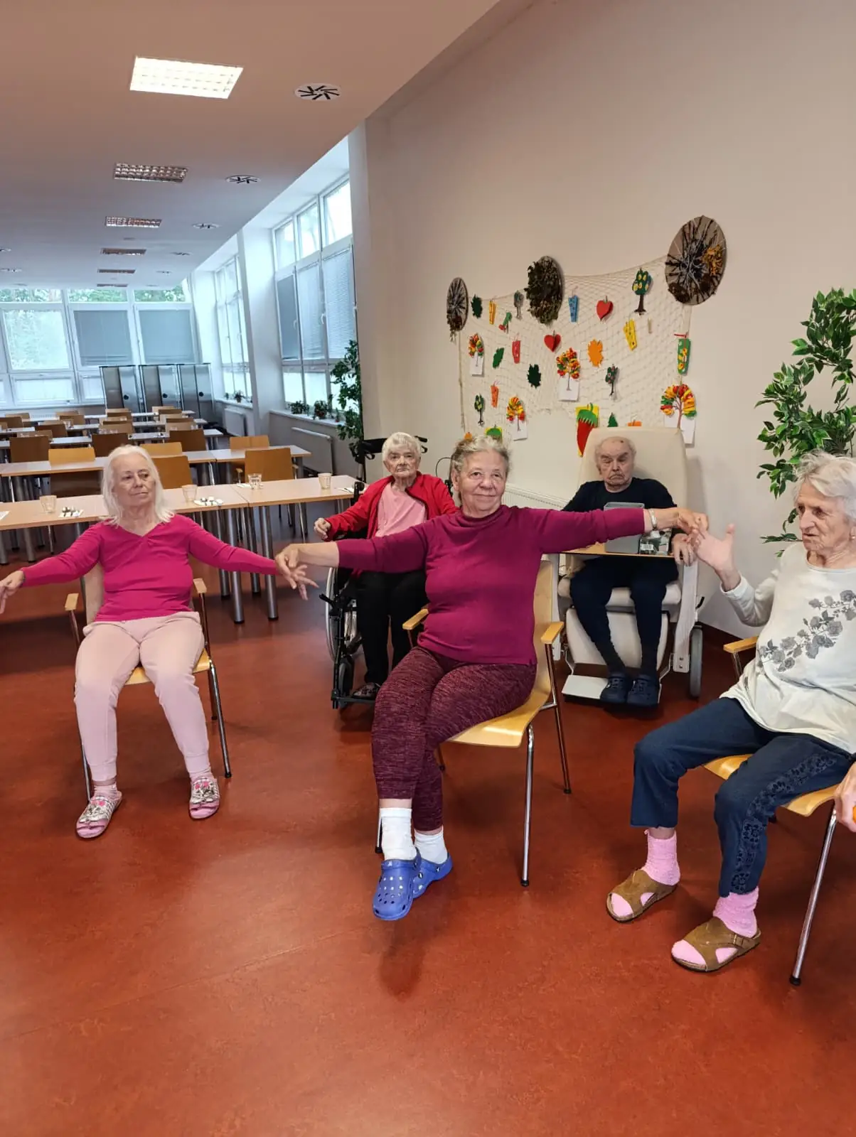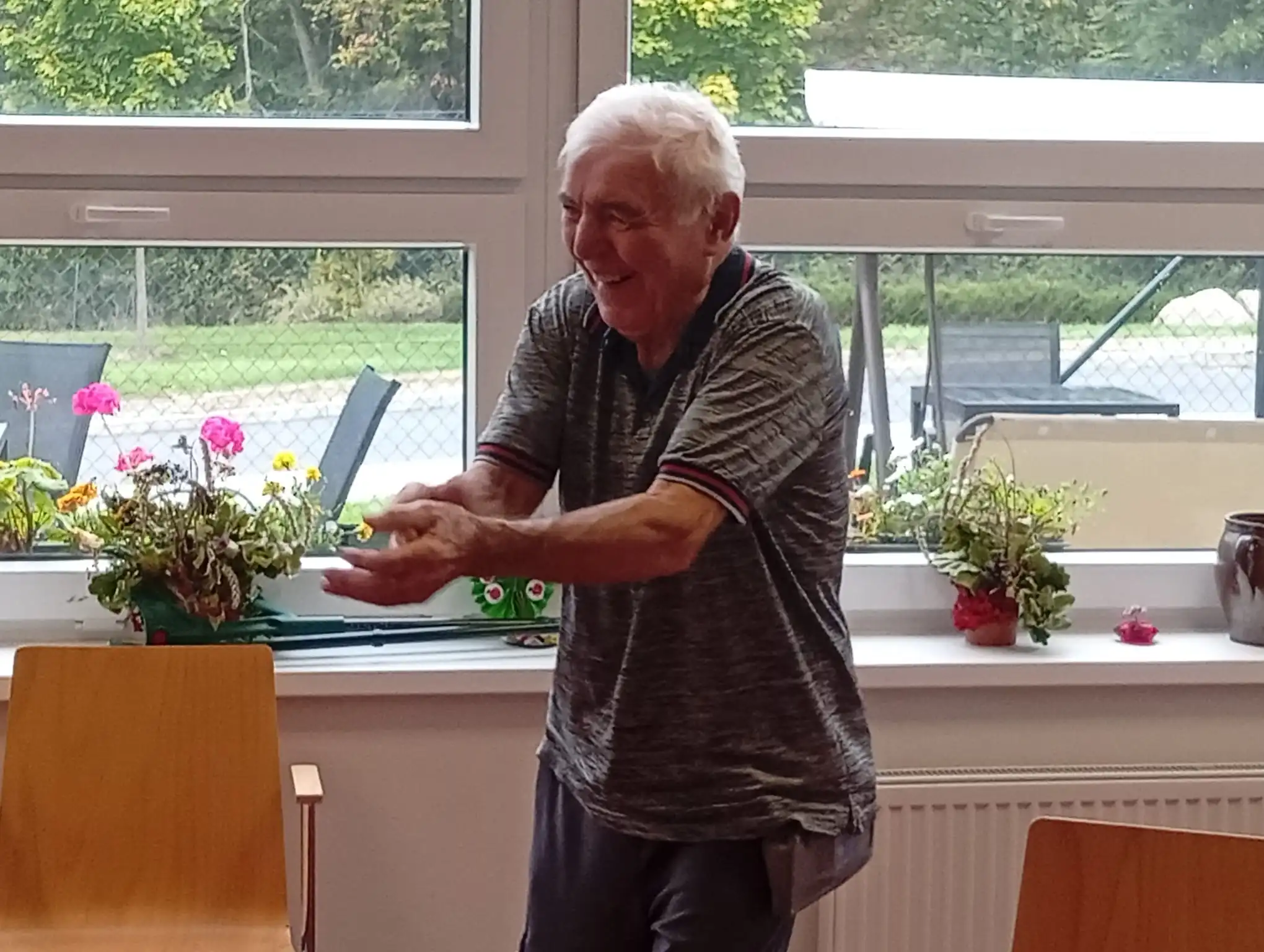 Dopoledne v ALZHEIMER HOME Nepomuk bylo plné pořádnou dávkou pohybu a dobré nálady! 💪 Naši klienti se pustili do pravidelného cvičení, které jim pomáhá udržovat vitalitu a flexibilitu. Protahovali jsme tělo, procvičovali klouby a smáli se u toho. Používáme lehká a bezpečná cvičení v sedě, která jsou pro každého zvládnutelná. Pohyb je klíčový pro udržení kondice a dobrého rozpoložení.