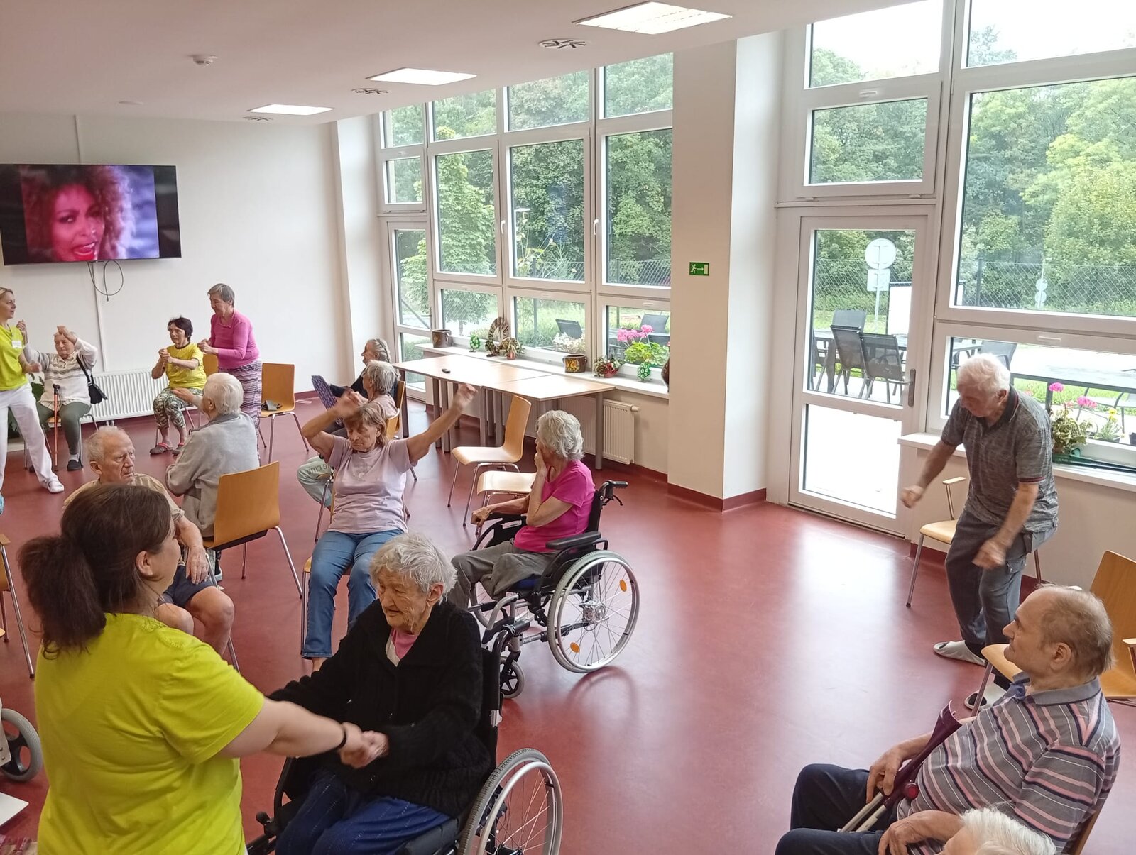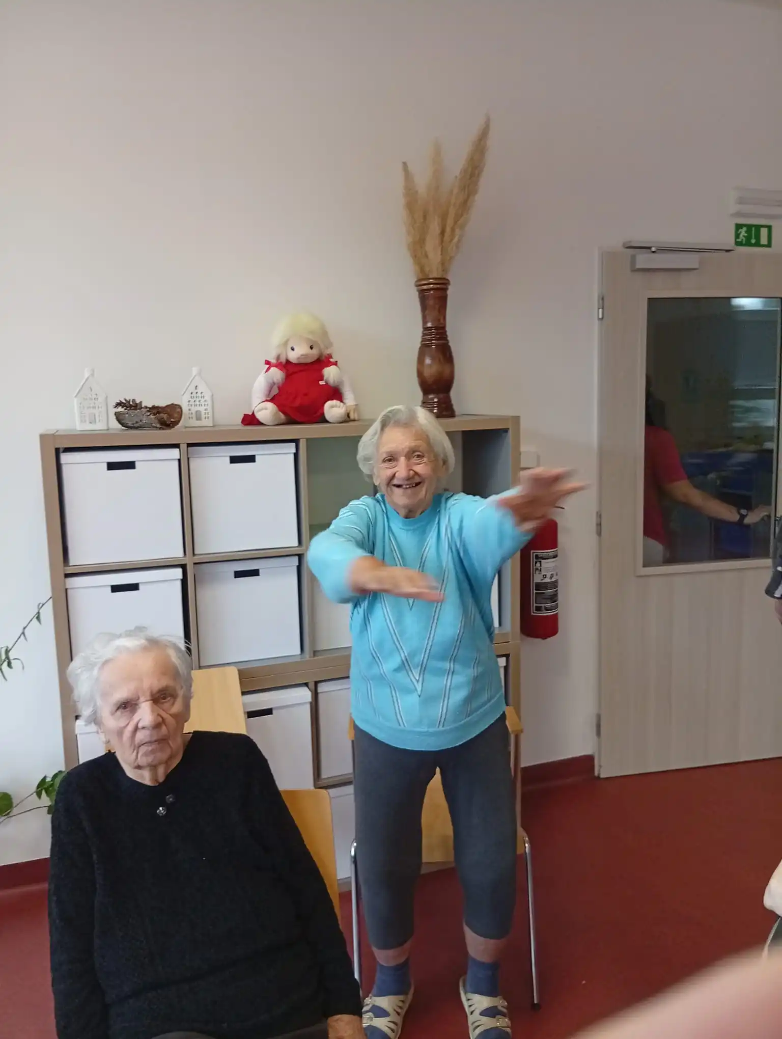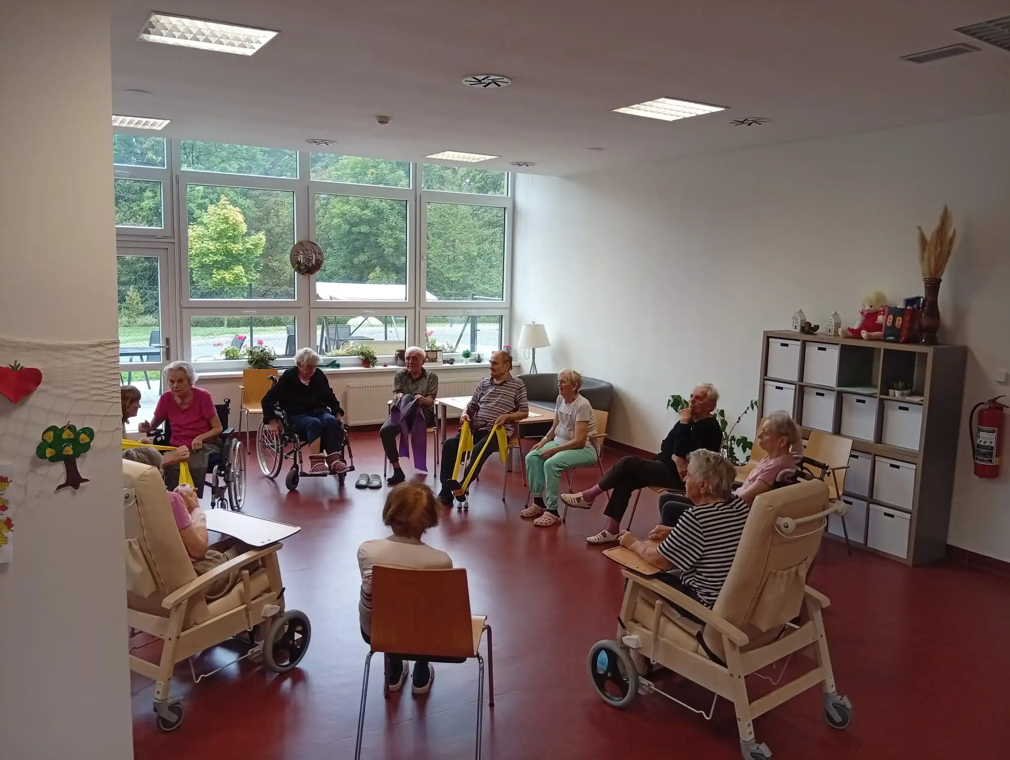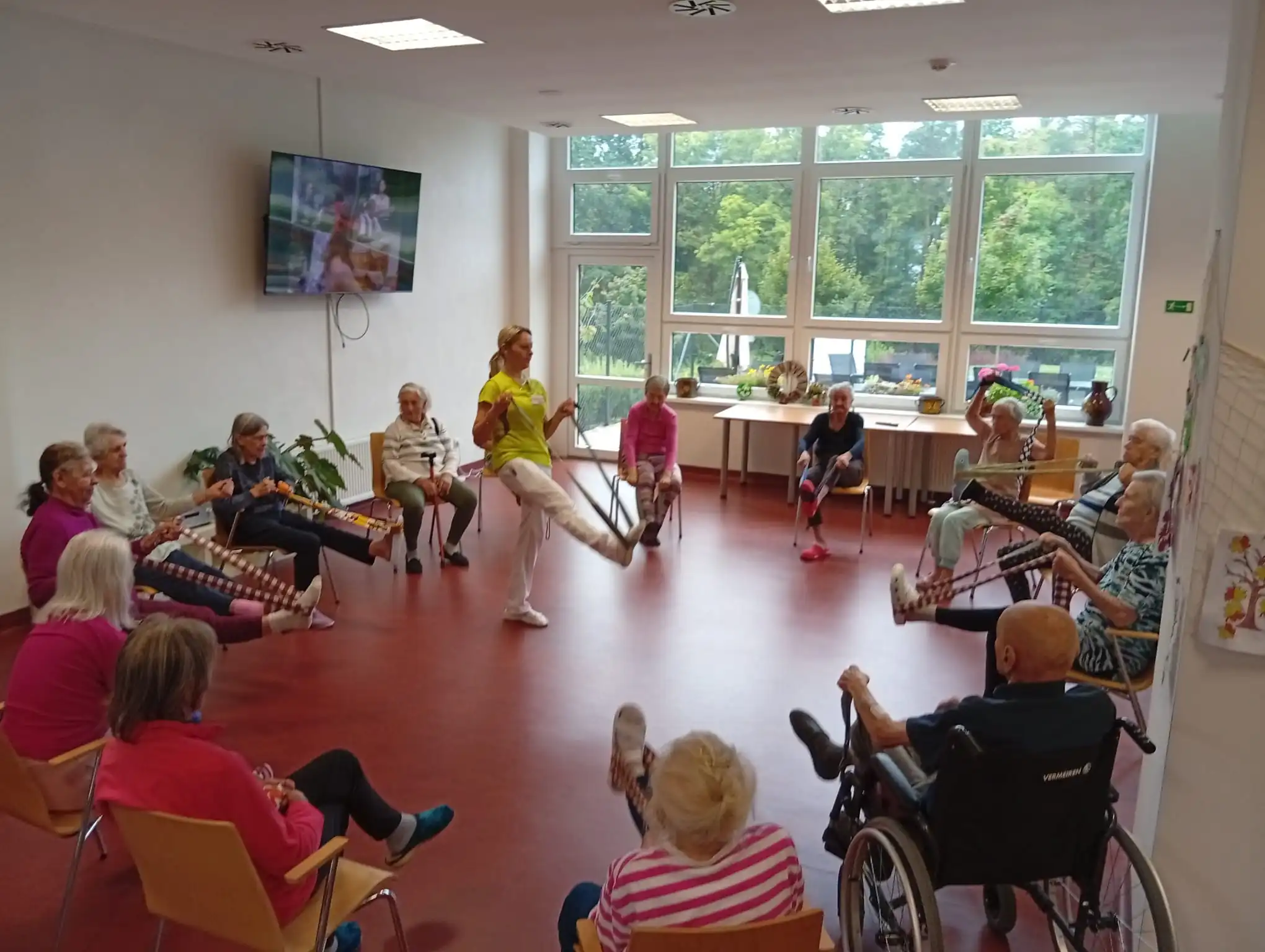 Dopoledne v ALZHEIMER HOME Nepomuk bylo plné pořádnou dávkou pohybu a dobré nálady! 💪 Naši klienti se pustili do pravidelného cvičení, které jim pomáhá udržovat vitalitu a flexibilitu. Protahovali jsme tělo, procvičovali klouby a smáli se u toho. Používáme lehká a bezpečná cvičení v sedě, která jsou pro každého zvládnutelná. Pohyb je klíčový pro udržení kondice a dobrého rozpoložení.