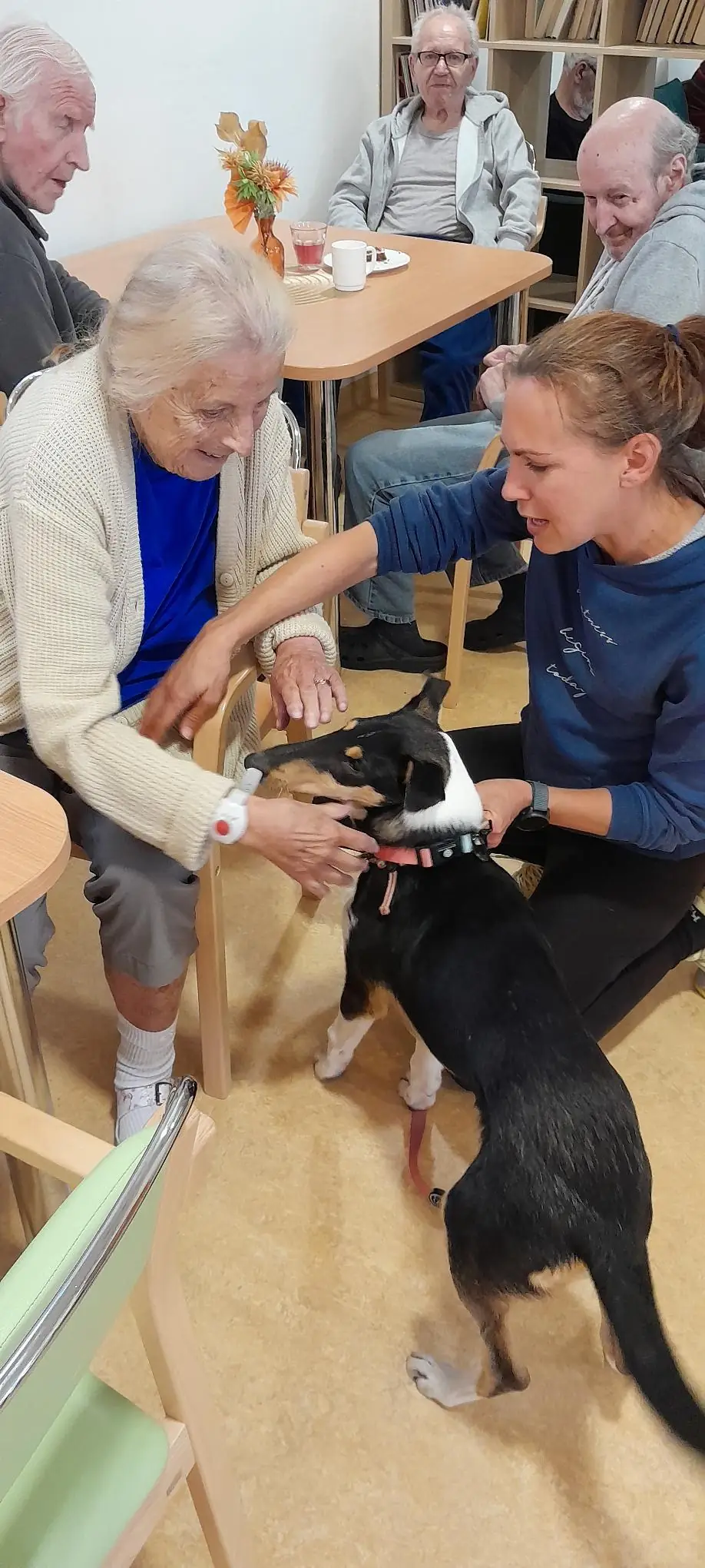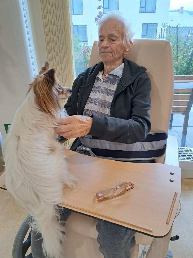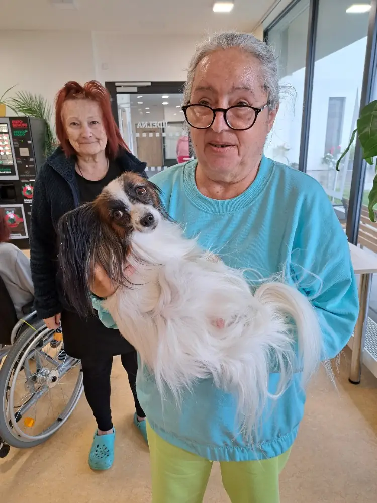 Každé dva týdny nás v ALZHEIMER HOME Boskovice navštěvují tři čtyřnozí terapeuti – psi z canisterapie. Naši klienti se na ně vždy těší: mohou je hladit, přitulit se k nim nebo si je posadit na klín. 🐶❤️
