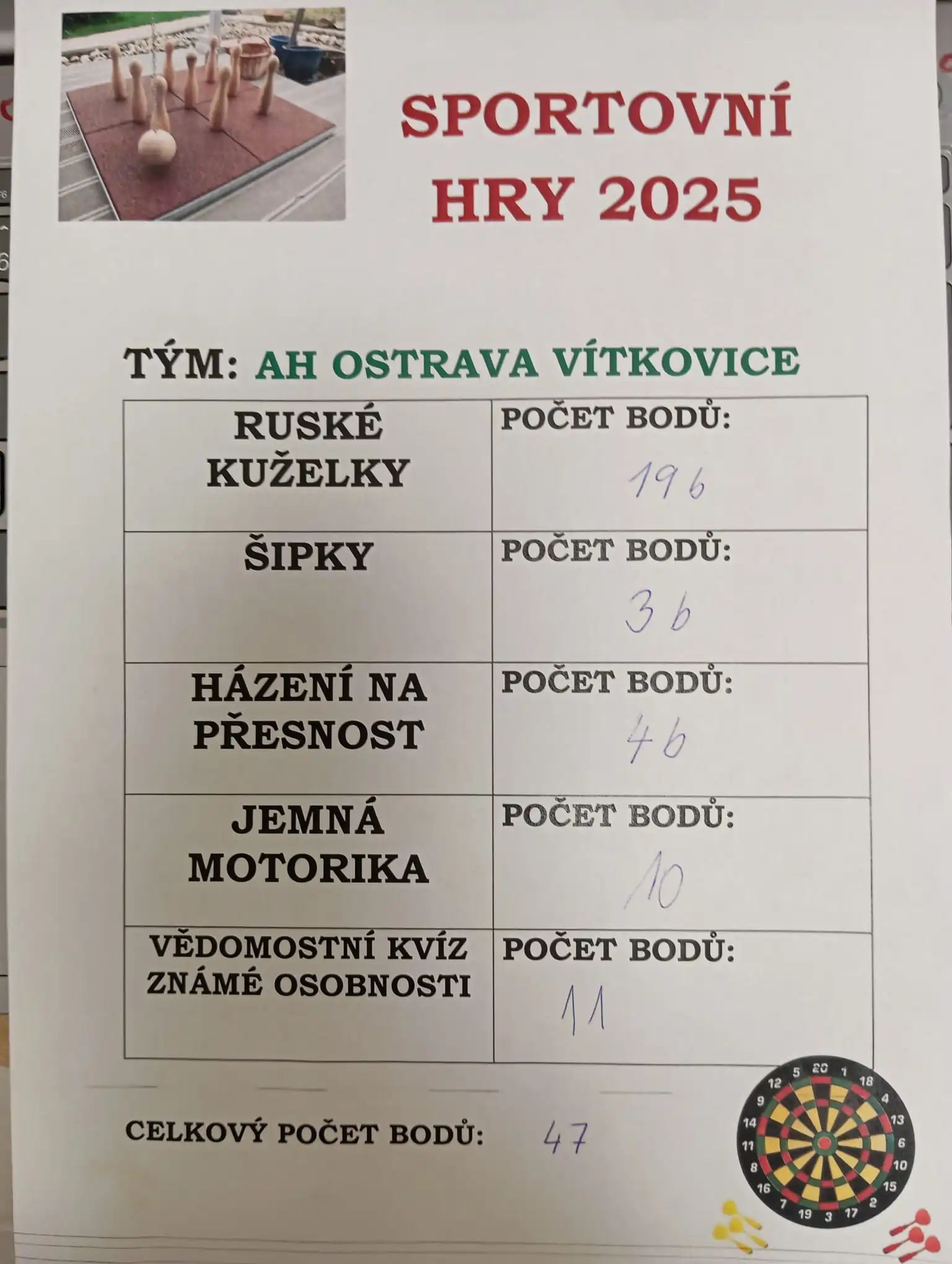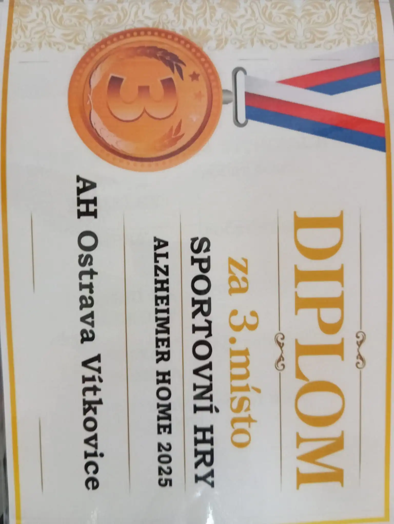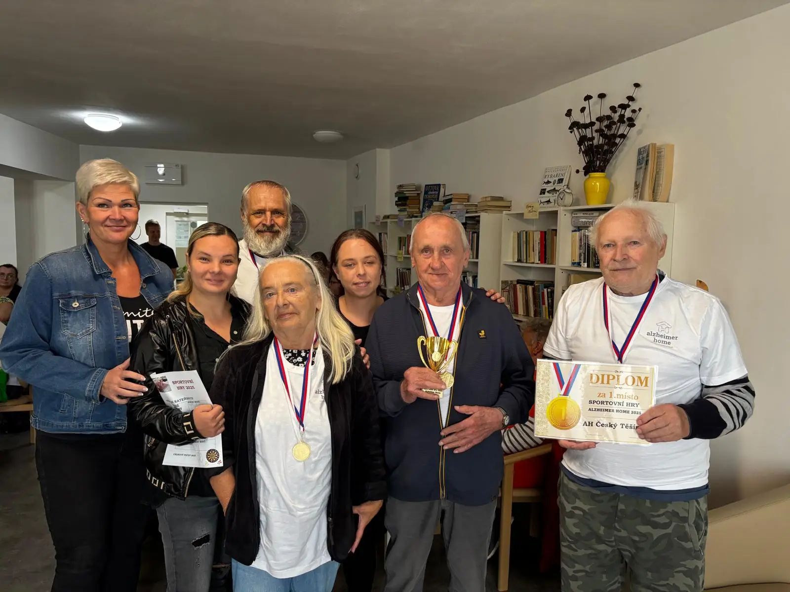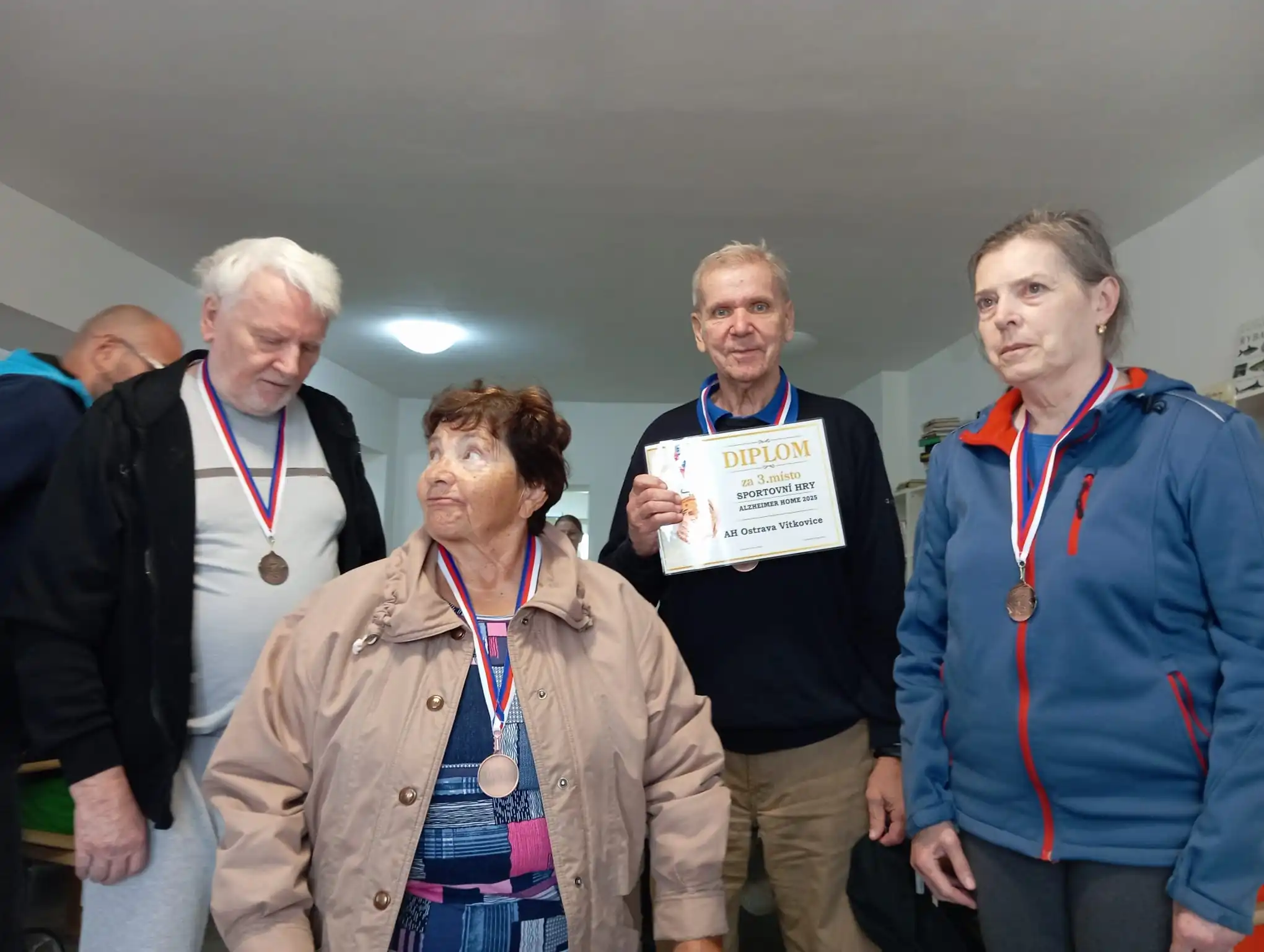 16.9. se v AH Kateřinice uskutečnily sportovní hry, kterých se mezi šesti spřátelenými výpravami z moravských AH domovů zúčastnila i ta naše z ALZHEIMERHOME Ostrava Vítkovice. Klienti mezi sebou soutěžili v různých disciplínách, od házení šipek na terč až po vědomostní kvíz. Vše bylo hezky zorganizované a všechna tato klání nejen klienty moc bavila. Třešničkou na dortu bylo 3. místo a bronzové medaile, které naši klienti vybojovali a s velkou slávou přivezli domů do Ostravy. Po loňském 2. místě v domácím prostředí tedy přišla další medaile, tentokrát s novým týmem a tímto všem vítězům z AH Český Těšín, ale i ostatním soutěžícím gratulujeme za účast a budeme se těšit na další ročník tohoto turnaje.