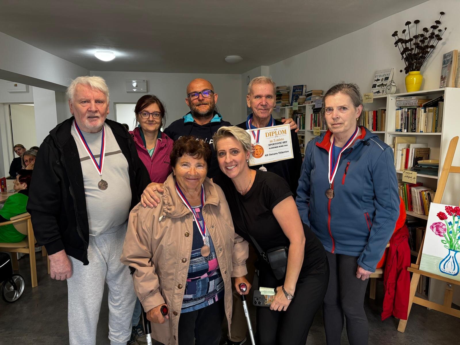 16.9. se v AH Kateřinice uskutečnily sportovní hry, kterých se mezi šesti spřátelenými výpravami z moravských AH domovů zúčastnila i ta naše z ALZHEIMERHOME Ostrava Vítkovice. Klienti mezi sebou soutěžili v různých disciplínách, od házení šipek na terč až po vědomostní kvíz. Vše bylo hezky zorganizované a všechna tato klání nejen klienty moc bavila. Třešničkou na dortu bylo 3. místo a bronzové medaile, které naši klienti vybojovali a s velkou slávou přivezli domů do Ostravy. Po loňském 2. místě v domácím prostředí tedy přišla další medaile, tentokrát s novým týmem a tímto všem vítězům z AH Český Těšín, ale i ostatním soutěžícím gratulujeme za účast a budeme se těšit na další ročník tohoto turnaje.