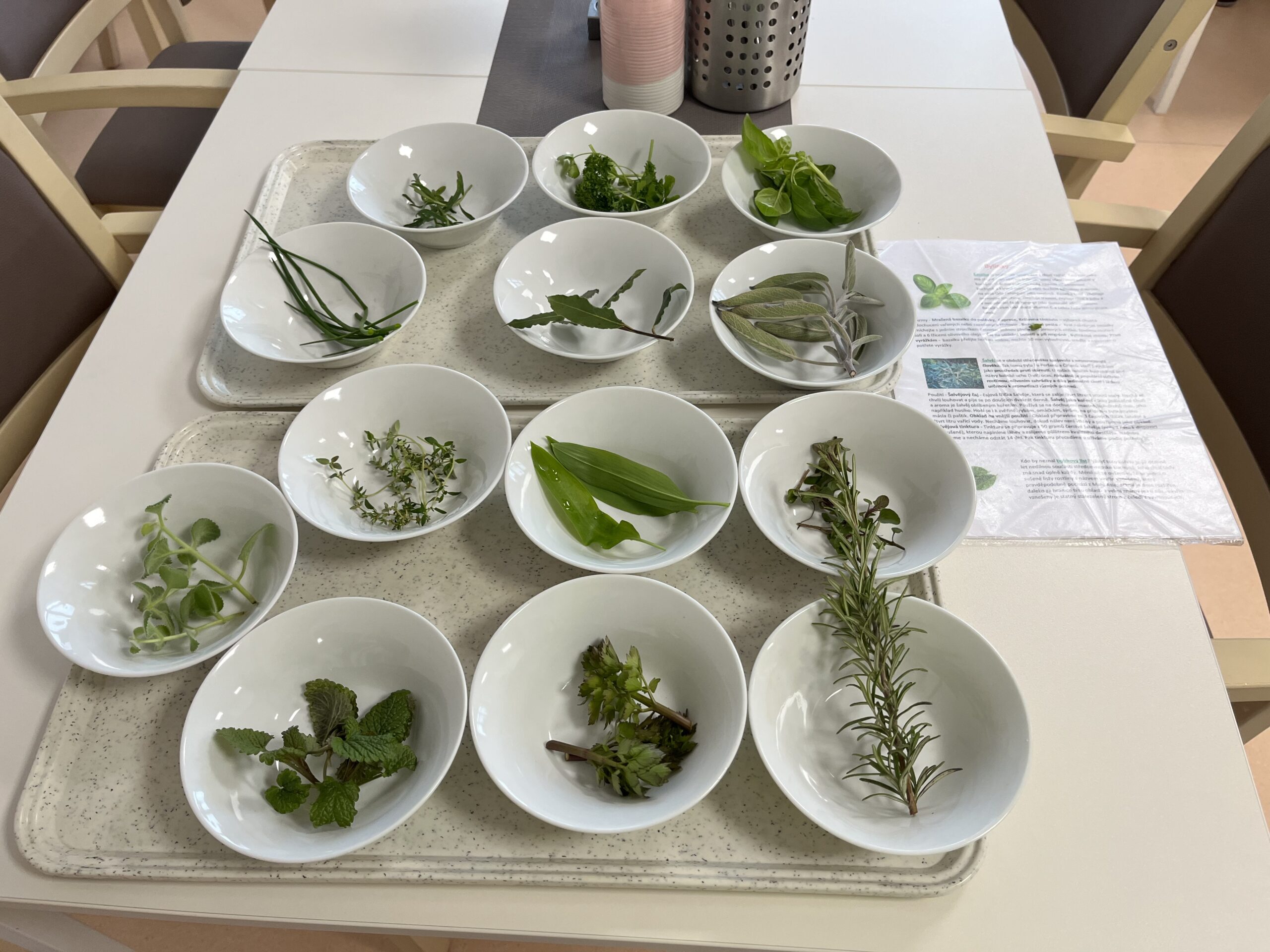 Jelikož jsou čichové podněty ve srovnání s jinými smysly pokládány za emočně nejvíce stimulující, snažíme se tyto podněty neustále vyhledávat. Nyní jsme se rozhodli využít vůně bylinek, které se používají nejen v kuchyni. Klienti si vyzkoušeli poznávat bylinky dle jejich typické vůně. Pro ty, kteří se již unavili touto aktivitou bylo připraveno setkání s fenkou Luci v rámci canisterapie.