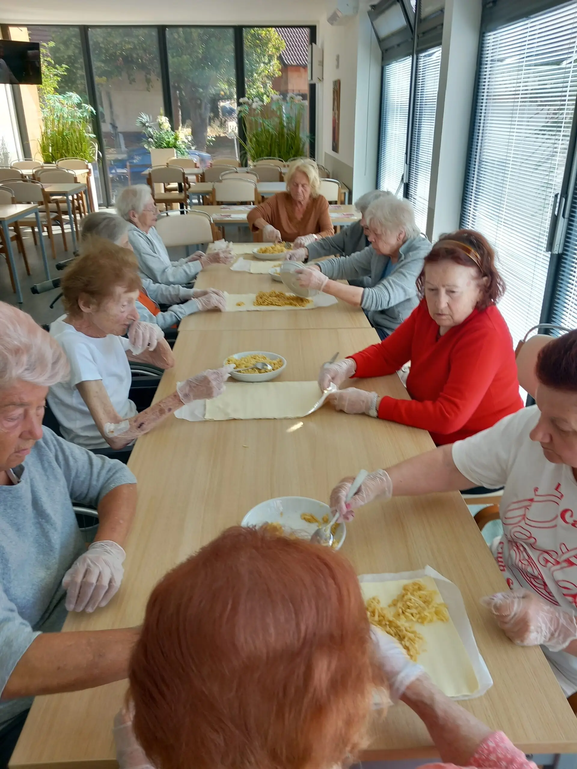Listové těsto, nastrouhaná jablíčka, skořice a velká porce dobré nálady – přesně tak vypadal náš den, kdy jsme společně pekli štrúdl. Smích se linul naší jídelnou spolu s vůní jablek a každý kousek těsta nesl kus vzpomínek i radosti z tvoření. Klienti se zapojili s chutí a hlavně si užívali společný čas. A výsledek? Štrúdl byl tak výborný, že zmizel dřív, než jsme stihli říct „dobrou chuť“.