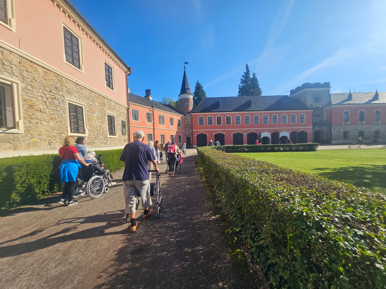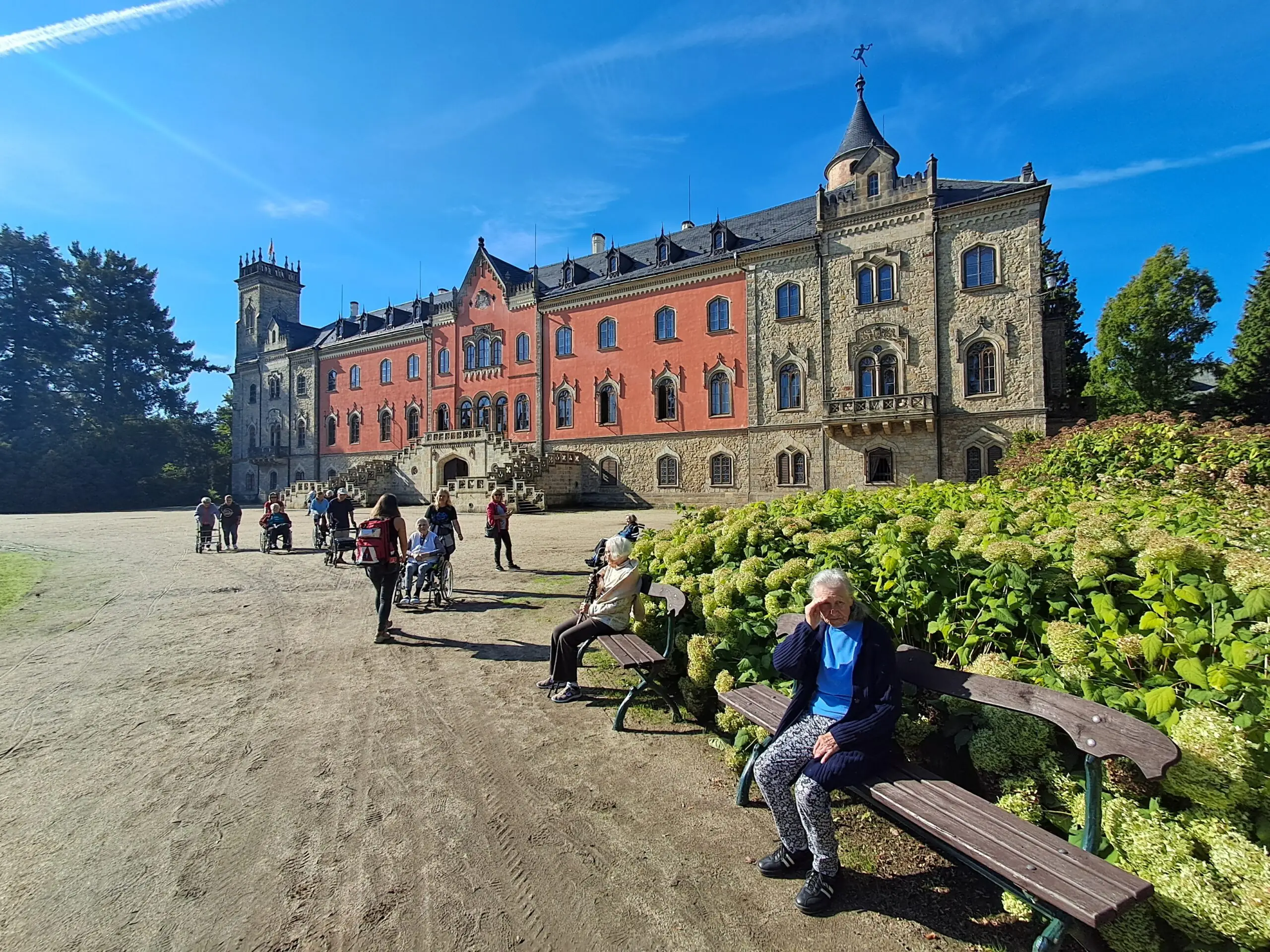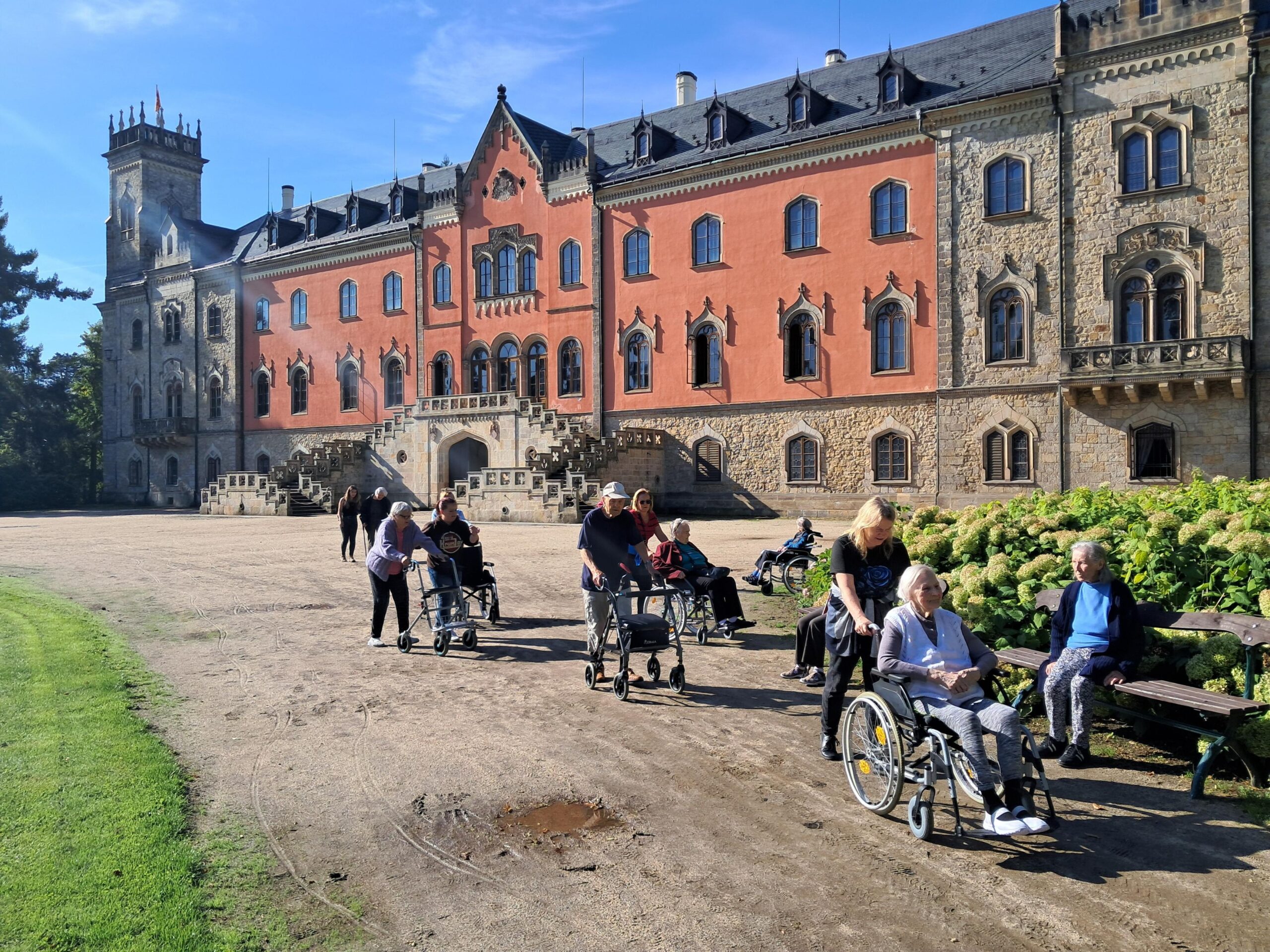 S klienty z ALZHEIMER HOME Minkovice jsme si užili krásný výlet na zámek Sychrov. Prošli jsme se zahradou, dali si kávu i zmrzlinu a obdivovali nádherné výhledy. Velké díky patří rodinným příslušníkům a kolegům, kteří jeli s námi – společně jsme si den moc užili.