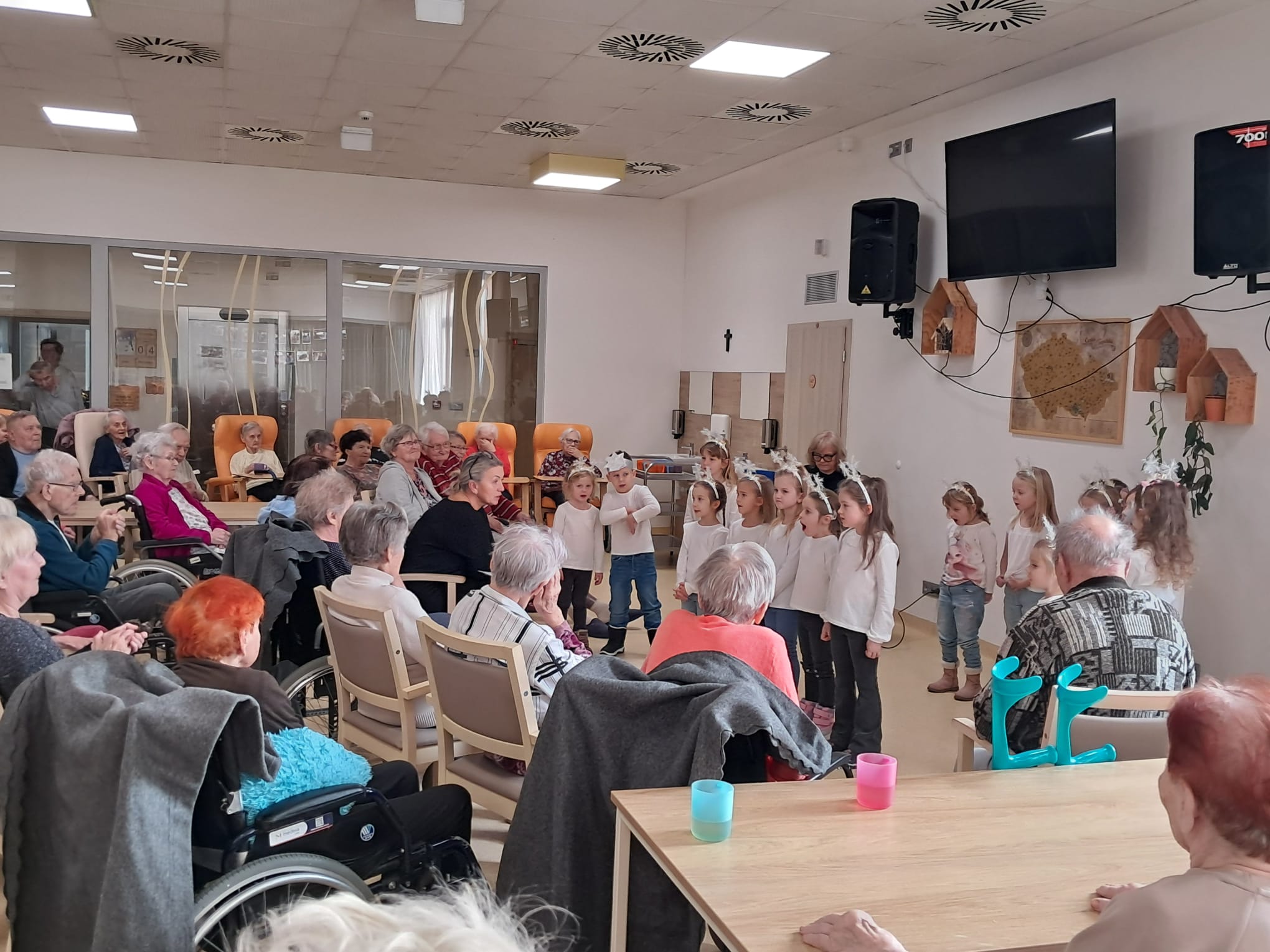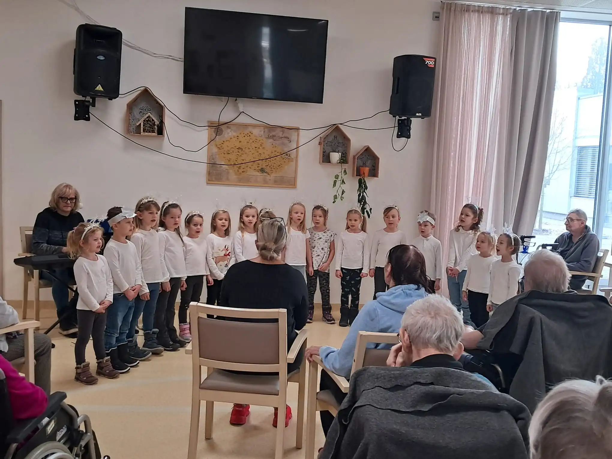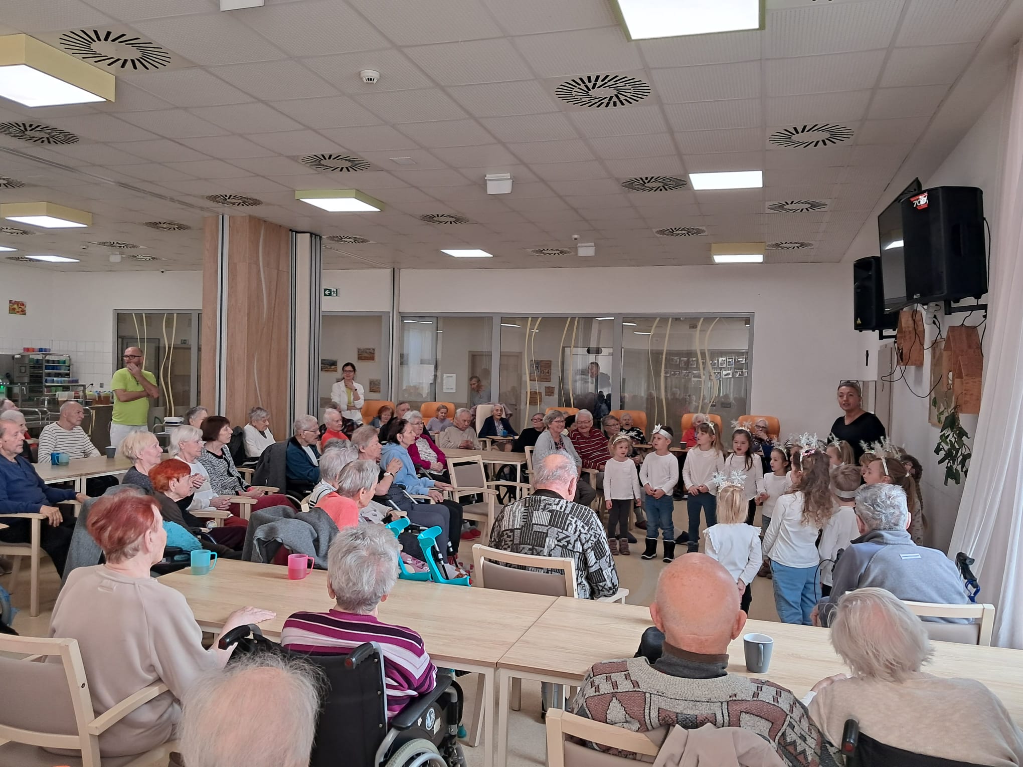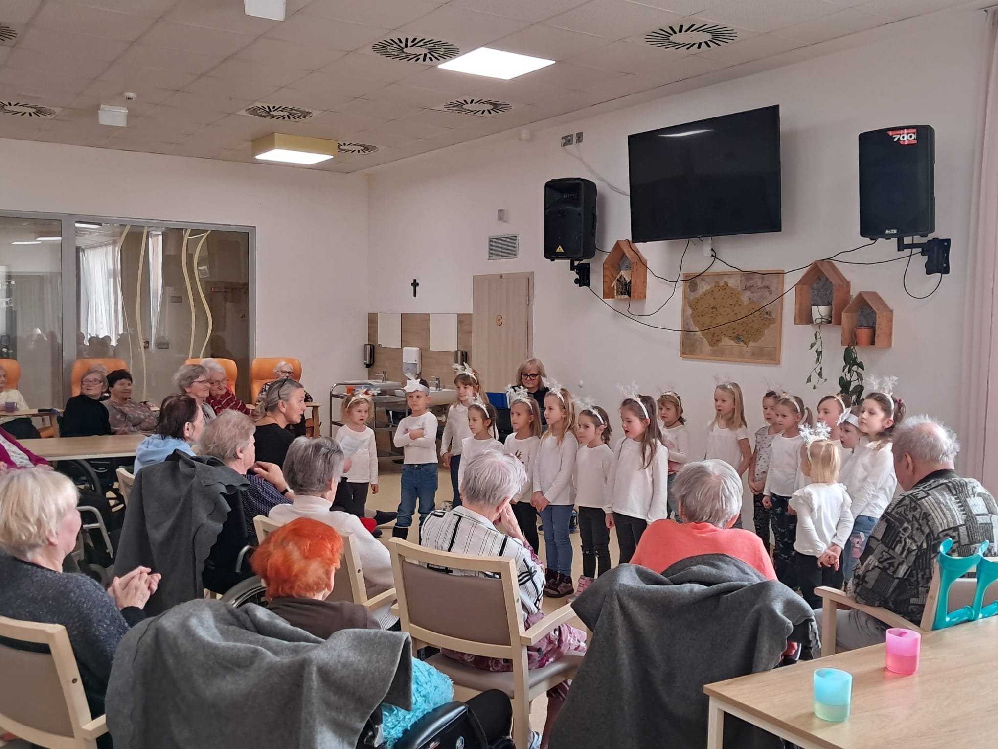 Minulý týden u nás v ALZHEIMER HOME Ostrava proběhlo první vánoční vystoupení dětí pro klienty v rámci mezigeneračního setkávání. Malí zpěváčci byli z mateřské školy Mitušova a společně si připravili pásmo krásných vánočních písní, které nám za doprovodu klavíru zazpívali. Poté rozdali našim klientům drobné dárečky, které si pro ně rovněž připravili. Byla to moc milá návštěva, kterou jsme si všichni užili. Děkujeme za přízeň a těšíme se n jaro na další vystoupení.