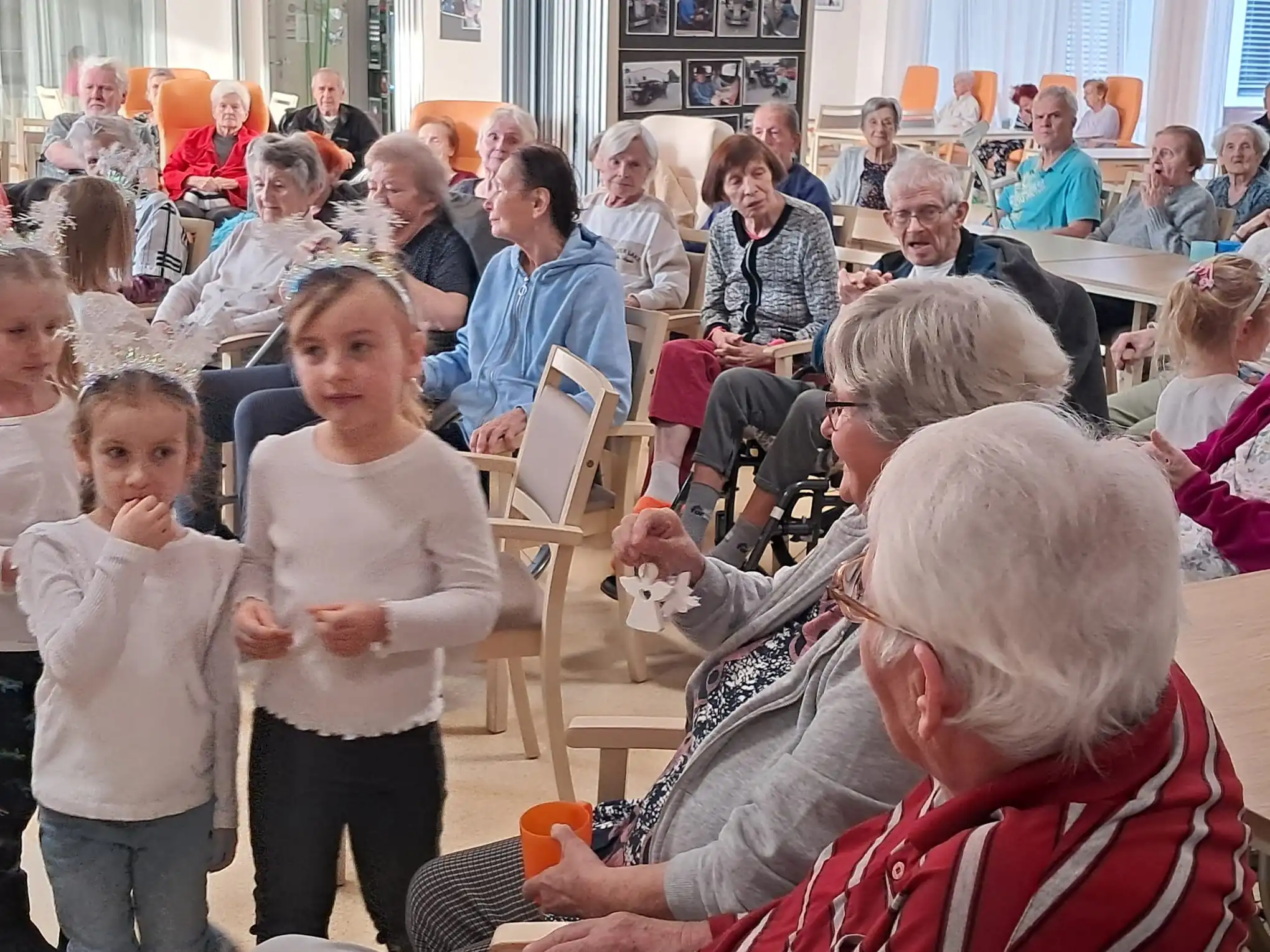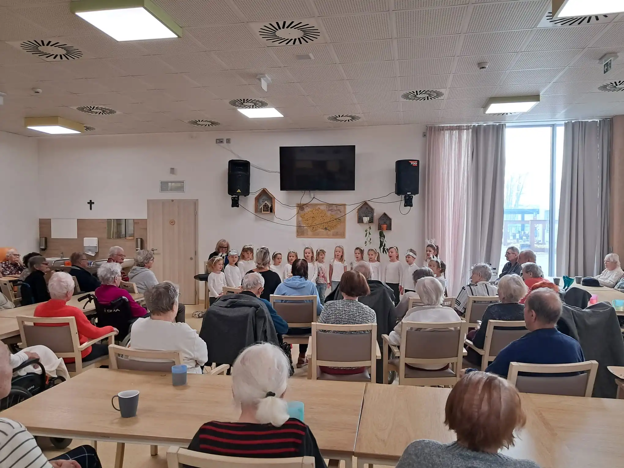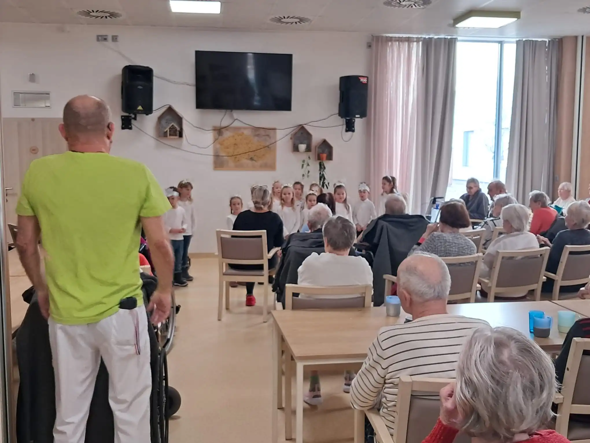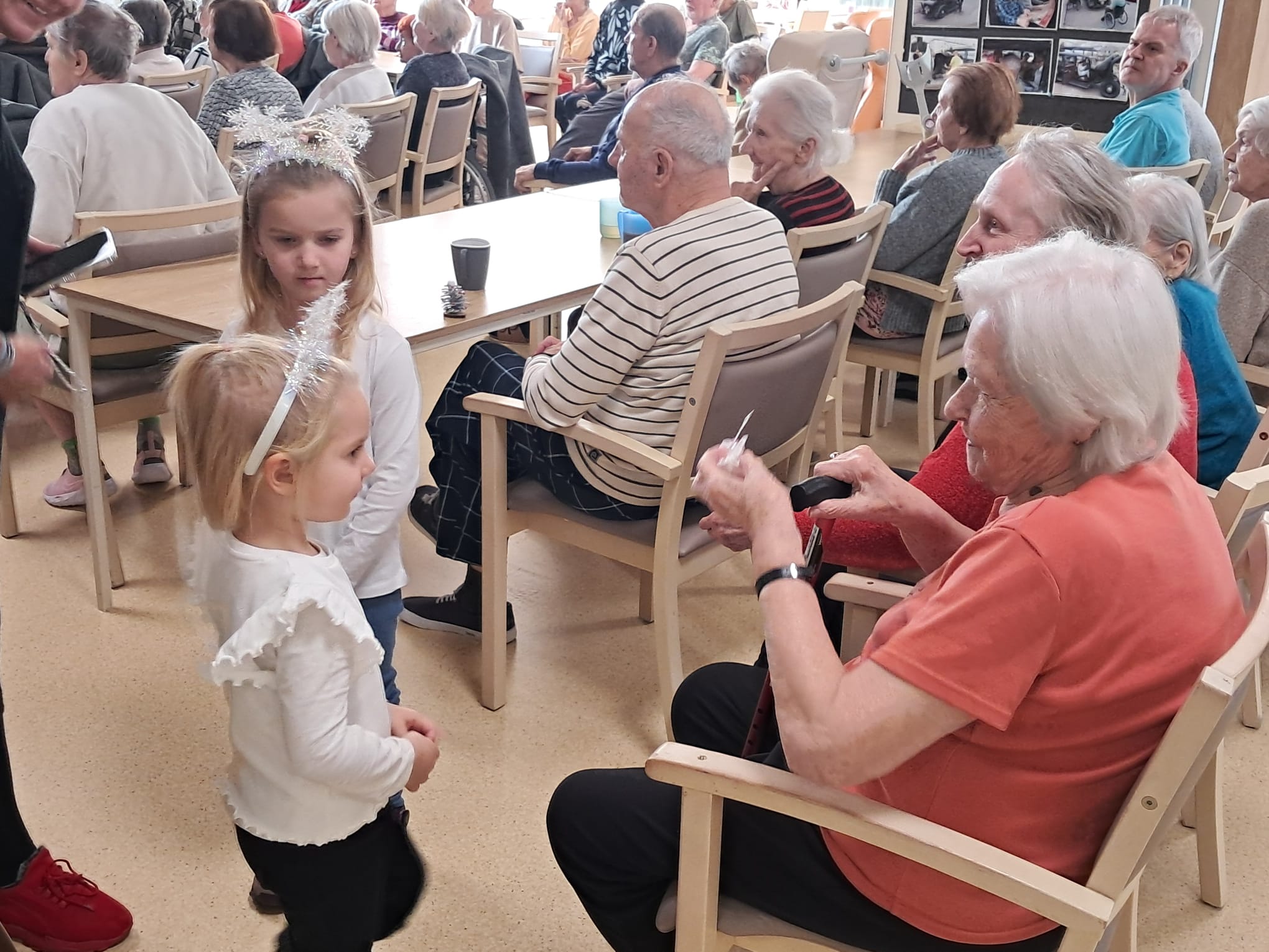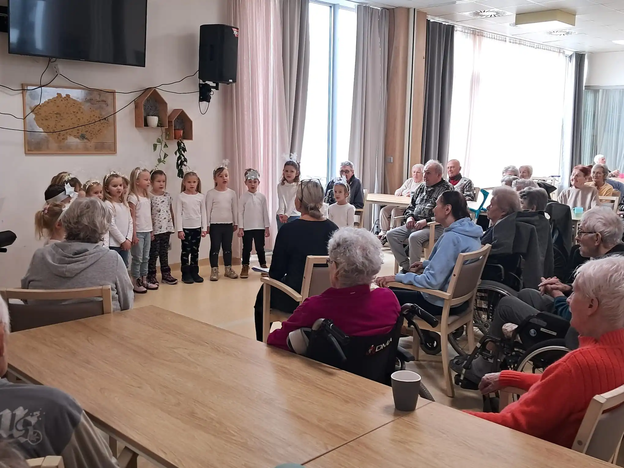 Minulý týden u nás v ALZHEIMER HOME Ostrava proběhlo první vánoční vystoupení dětí pro klienty v rámci mezigeneračního setkávání. Malí zpěváčci byli z mateřské školy Mitušova a společně si připravili pásmo krásných vánočních písní, které nám za doprovodu klavíru zazpívali. Poté rozdali našim klientům drobné dárečky, které si pro ně rovněž připravili. Byla to moc milá návštěva, kterou jsme si všichni užili. Děkujeme za přízeň a těšíme se n jaro na další vystoupení.